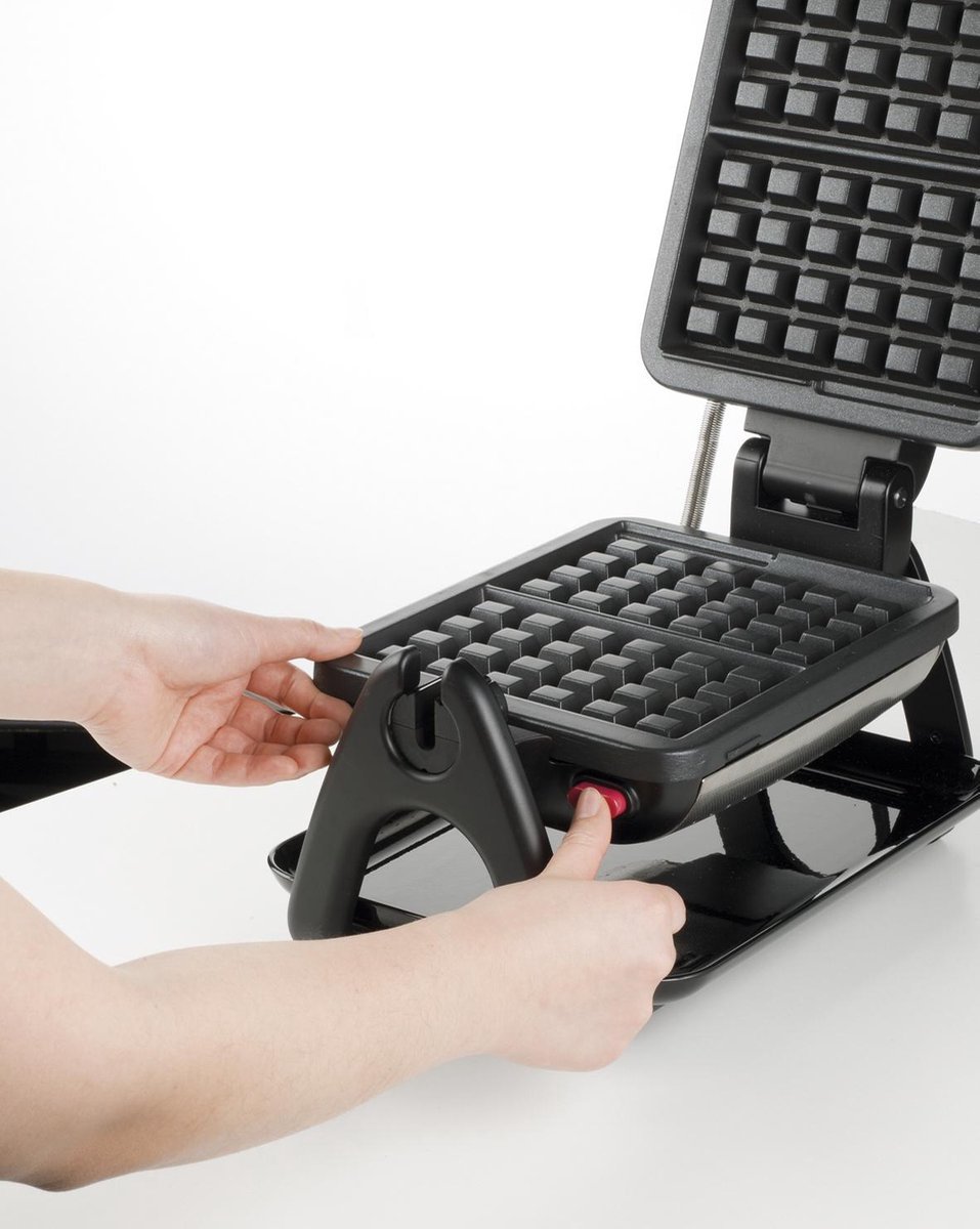 Dit is een uitstekend apparaat. Je kunt de temperatuur precies instellen en de bakplaten zijn eenvoudig afneembaar, zodat je ze makkelijk kunt afwassen. Voor een mooi wafelpatroon aan beide kanten draai je het toestel gewoon 180°. In ongeveer 3 minuten bak je twee grote wafels.