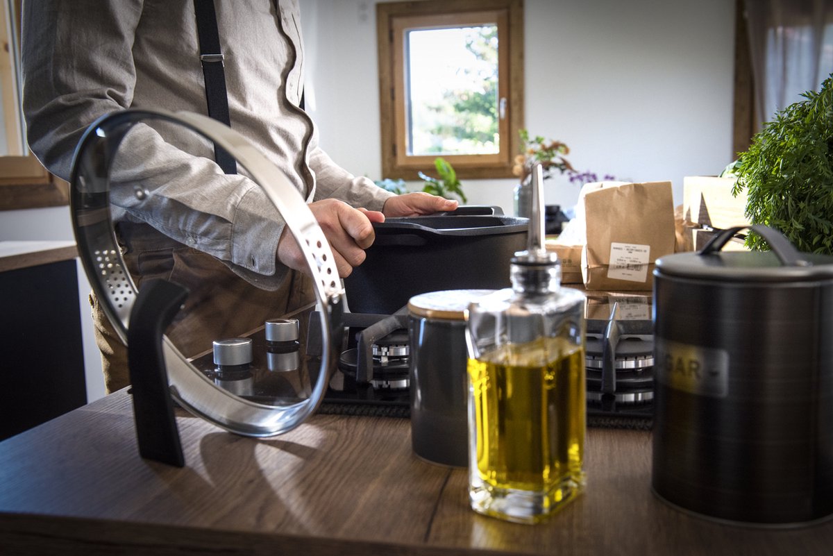De dikke bodem en wanden maken het opwarmen consistent en voorspelbaar. Geef de pan even de tijd om op temperatuur te komen; gebruik de Thermo‑Signal als leidraad. Voor het dichtschroeien van vlees of paddenstoelen: pan voorverwarmen, een dun laagje olie toevoegen, en pas bakken zodra de indicator het aangeeft. Zo voorkom je dat vlees vocht verliest en gaart in plaats van braadt.