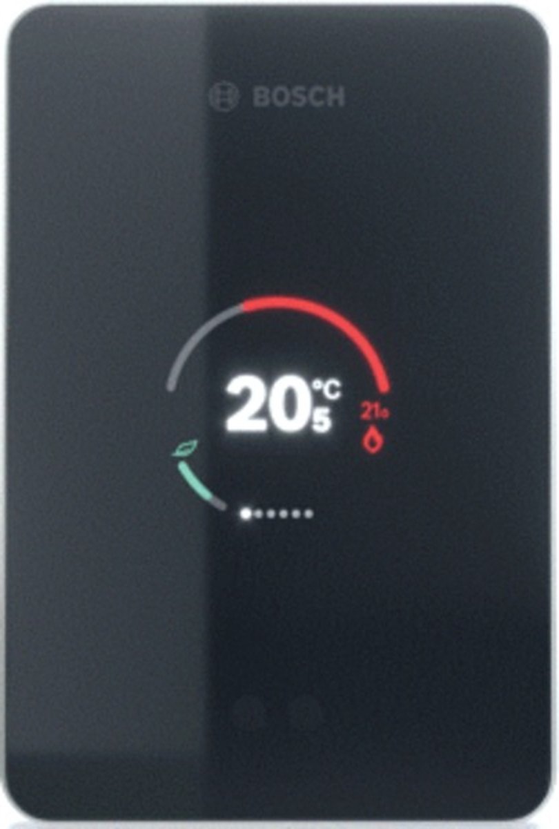 De Bosch EasyControl slimme thermostaat helpt huishoudens in Nederland eenvoudig energie besparen dankzij automatische aanwezigheidsdetectie. Het platte design met zwart glas past moeiteloos in je interieur en reageert met subtiele kleurverlichting.
