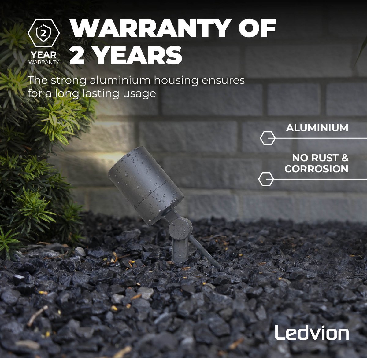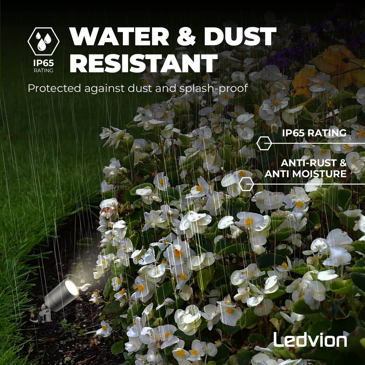 - Wat je eraan hebt: Je kunt de spot het hele jaar door buiten laten staan, ook in natte periodes. Ideaal voor permanente tuinaccentverlichting zonder telkens binnenhalen of afdekken.