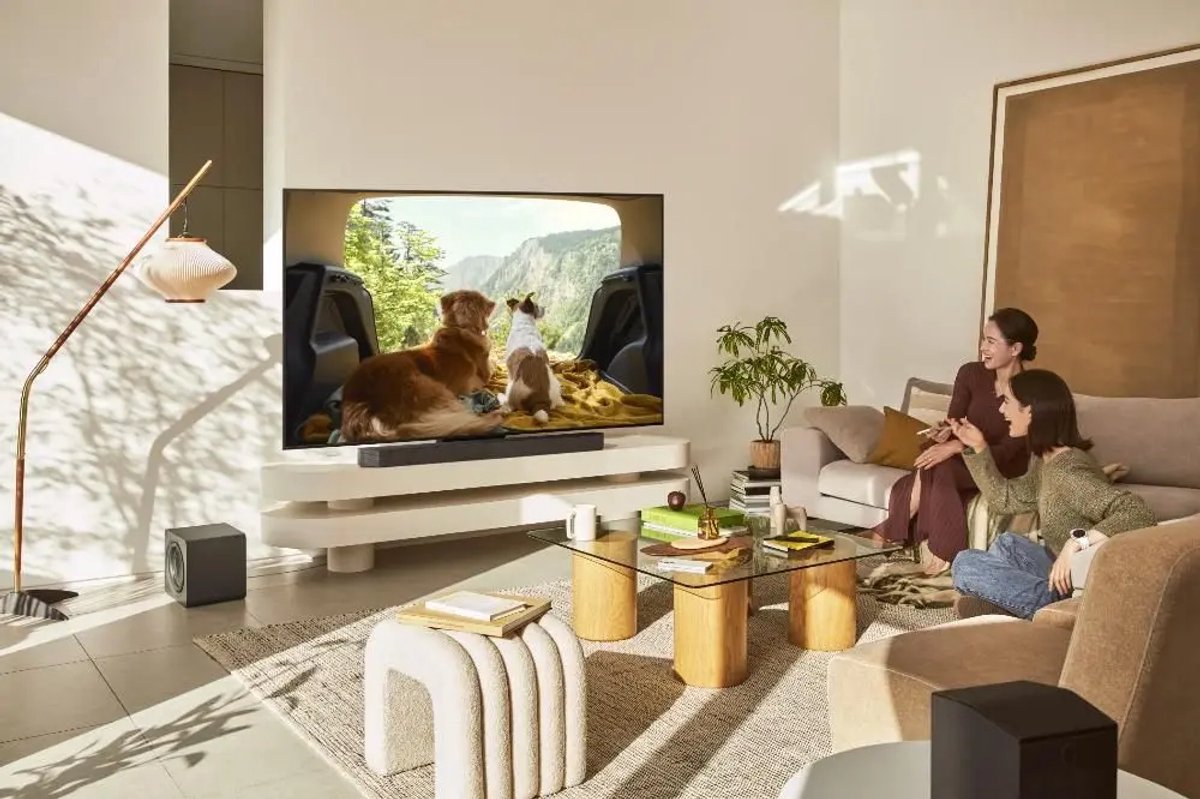 - Geluid: wil je bioscoopimpact, plan dan een soundbar of surroundsysteem in. De tv helpt met adaptief geluid, maar fysiek grotere luidsprekers winnen bijna altijd op schaal en laagweergave.