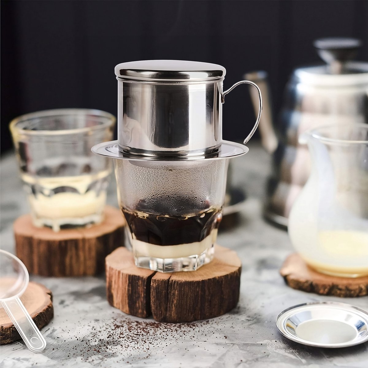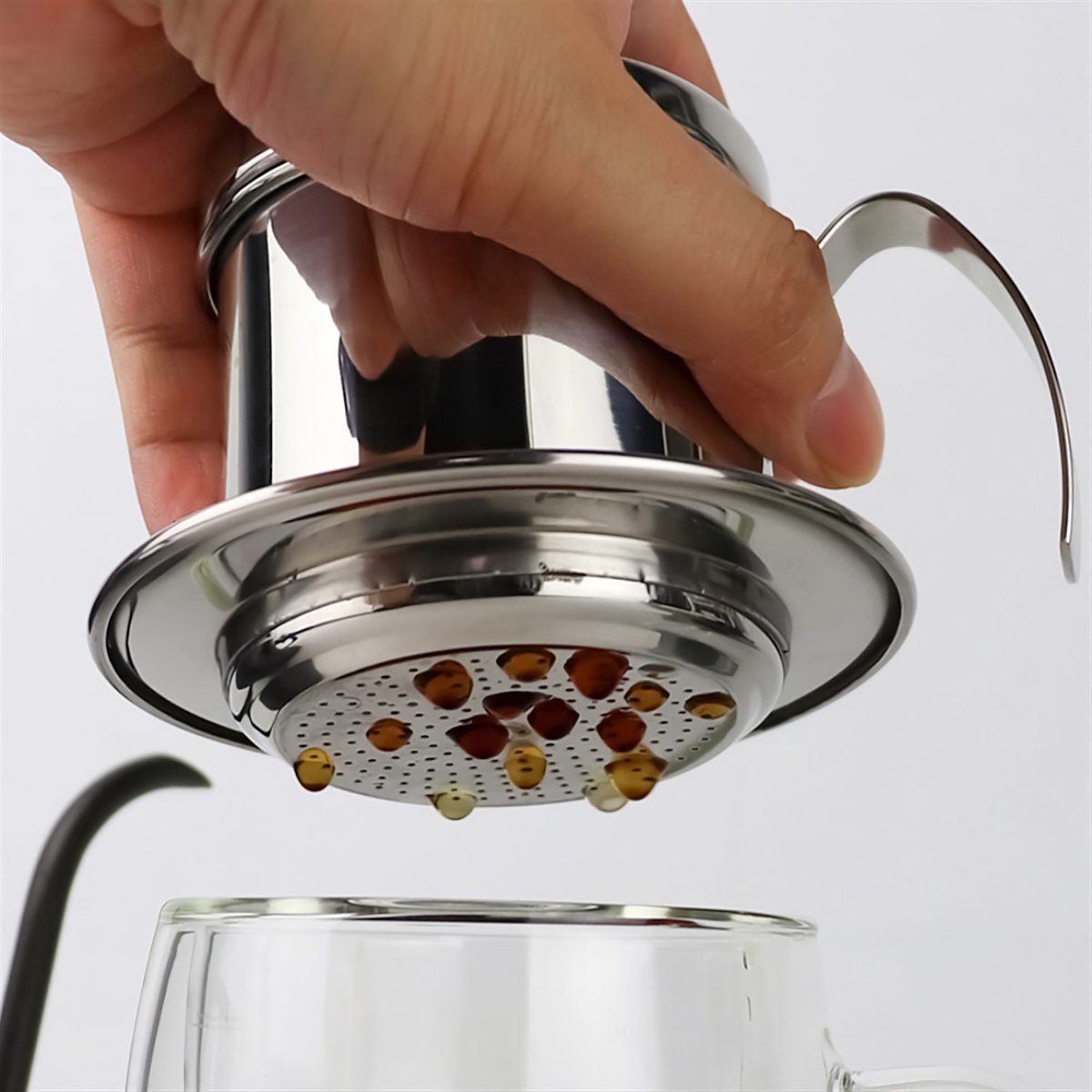 De Vietnamese koffie druppelfilter is een compacte, roestvrijstalen filterset bedoeld voor iedereen die op een eenvoudige manier authentieke Vietnamese koffie thuis, op kantoor of onderweg wil zetten. Het apparaat werkt zonder wegwerpfilterpapier en richt zich op gebruiksgemak, duurzaamheid en draagbaarheid.