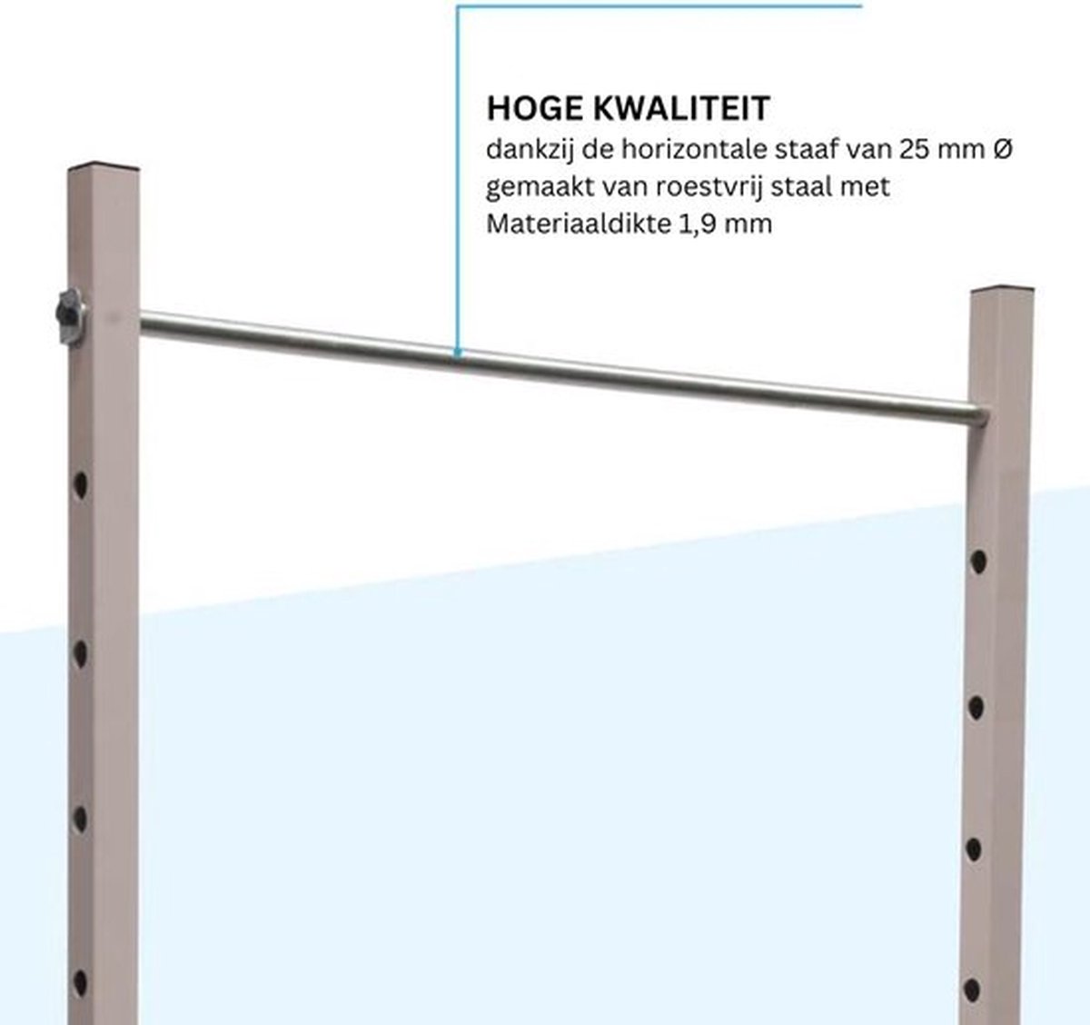 De listing benadrukt dat de constructie stevig is en optimale stabiliteit biedt. Dit maakt het veilig voor kinderen om krachtiger bewegingen te maken zonder dat het toestel wiebelt. In de praktijk betekent dit dat kinderen grotere sprongen of langere zwierbewegingen kunnen oefenen, mits het rek correct en stevig is gemonteerd.