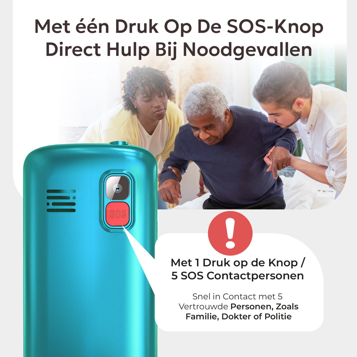 De SOS-noodknop belt bij één druk direct een vooraf ingesteld noodnummer en verstuurt een sms naar ingestelde contacten. Dit is van grote waarde bij medische noodgevallen of vallen thuis: hulp inschakelen gaat snel en zonder ingewikkelde handelingen. SOS-noodknop is een van de belangrijkste veiligheidsfeatures van dit toestel.