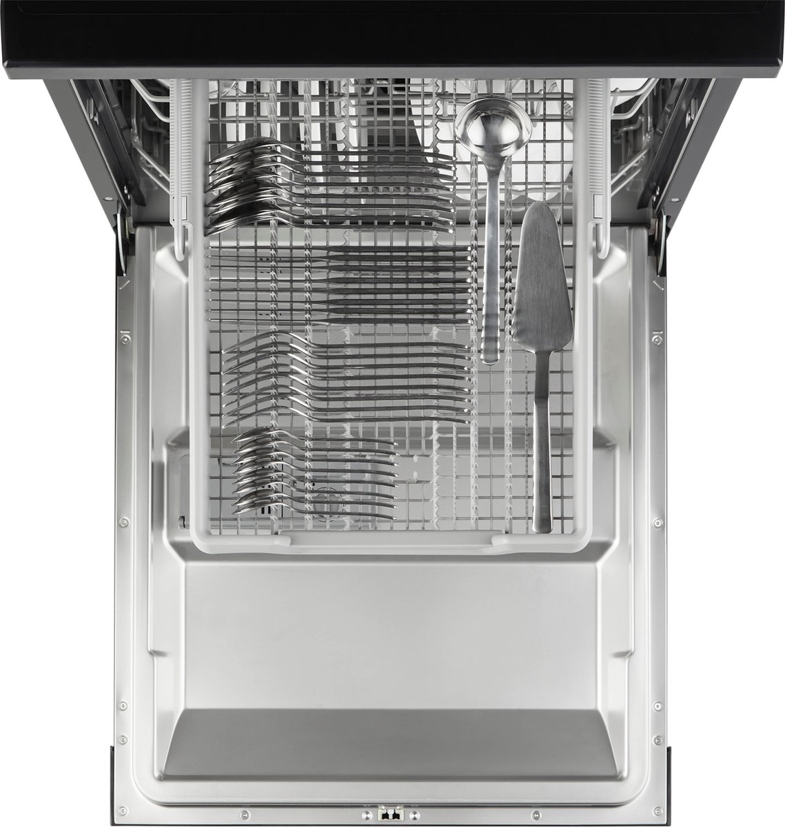 - Besteklade vullen: leg bestek bij voorkeur met handvatten naar beneden voor een betere reiniging; zware of grote keukengerei-items kunnen in de onderkorf.