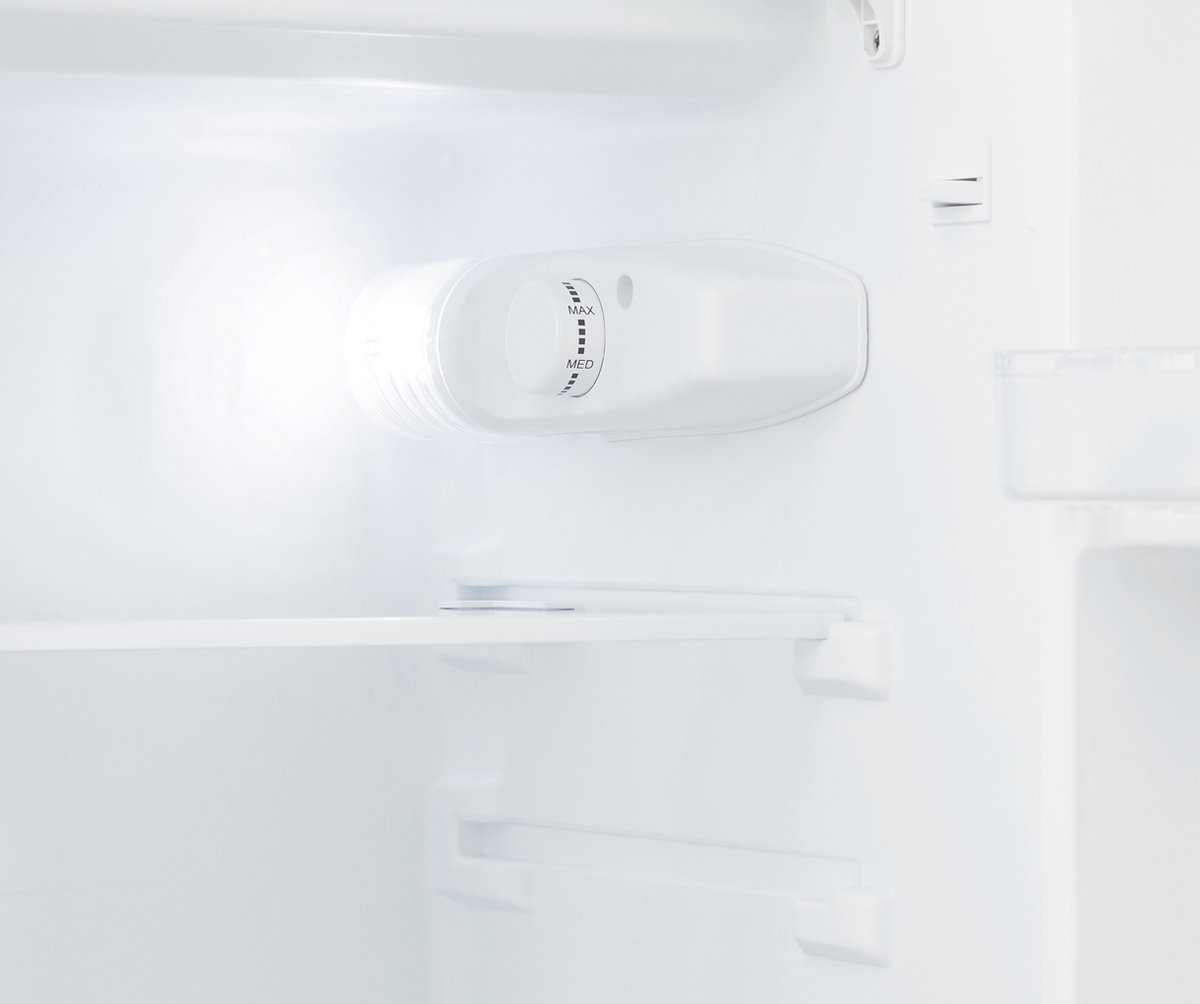 De temperatuur stel je in met een draaiknop met de standen OFF-MIN-MED-MAX. Geen ingewikkelde menu’s: draai naar MIN voor milde koeling, MED voor allround gebruik of MAX wanneer je warm ingeladen boodschappen snel wilt terugkoelen. Tip: gebruik MED als startpunt en corrigeer per seizoen een tikje bij voor optimaal resultaat.