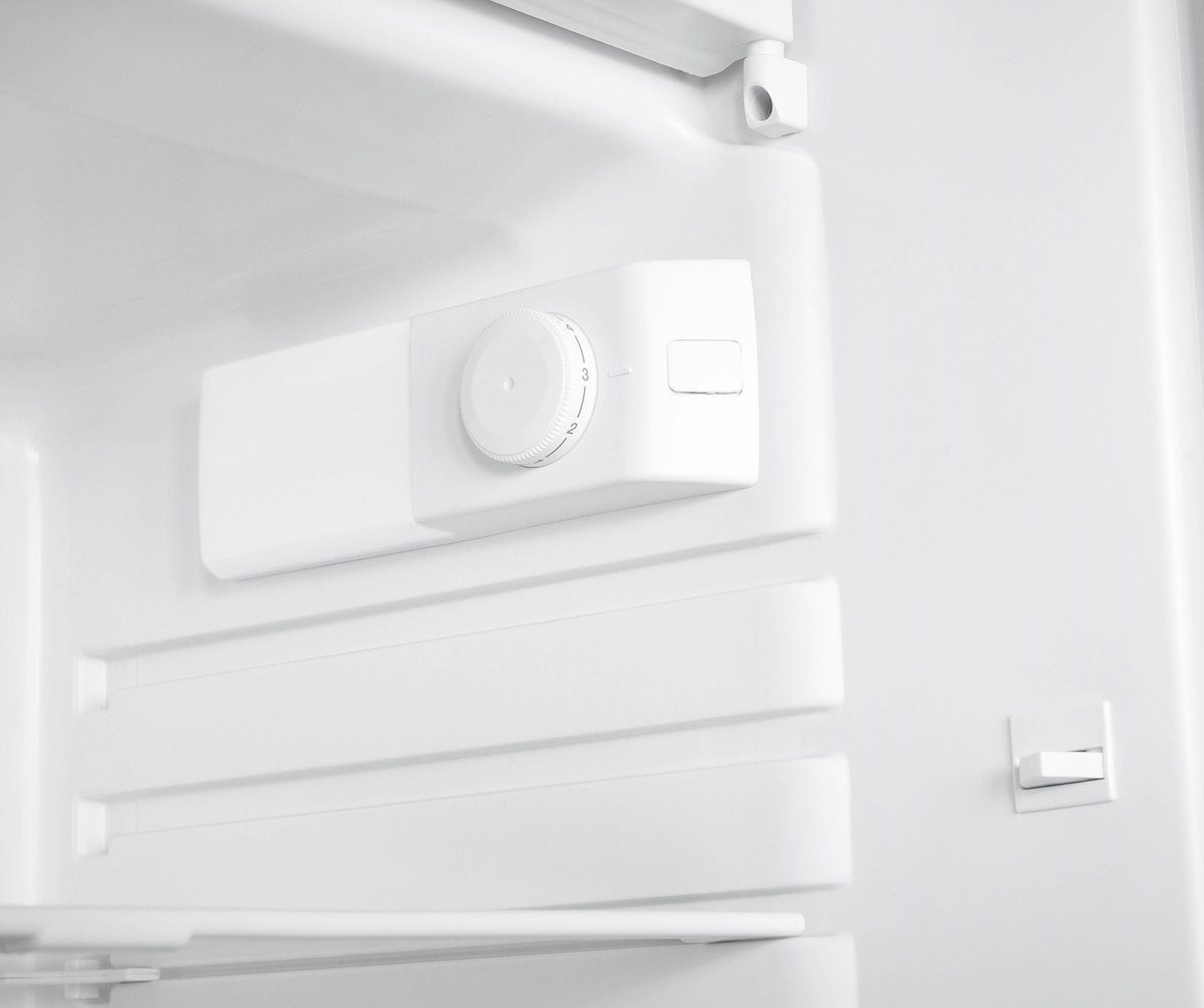 Binnenin stel je de temperatuur eenvoudig in via een draaiknop met 8 standen, van 0 tot en met 7 (bron: listing, gecontroleerd 2025). Geen menu’s of sensoren om te leren; gewoon een duidelijke mechanische regeling. Kies een middenstand voor dagelijks gebruik en pas aan bij warm weer of bij grote belading.