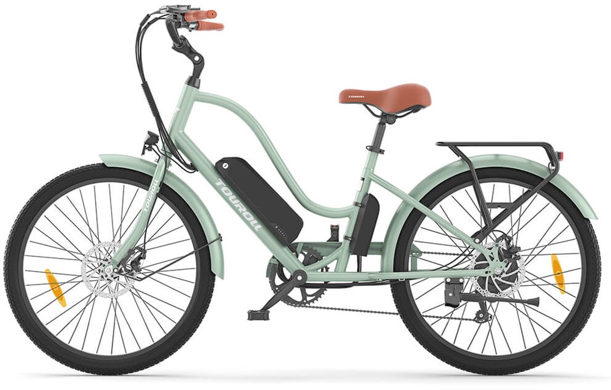 De Touroll B2 elektrische fiets is een comfortabele stadsfiets die in Nederland wettelijk conform is (250 W, 25 km/u), ideaal voor zorgeloos woon-werkverkeer. Dankzij de afneembare 36 V 15,6 Ah accu rijdt u lange afstanden zonder gedoe.
