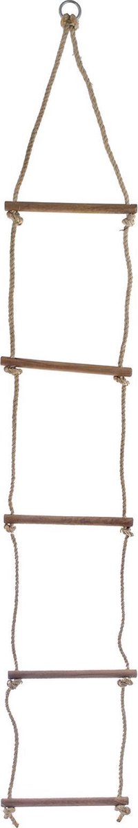 - Touwladder met 5 houten treden (inclusief ring aan de bovenkant)