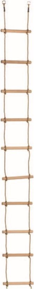 Overzicht:Deze touwladder PP touw 10 sporten 3,5 m is een stevige speel- en trainingsladder, ideaal voor Nederlandse gezinnen die motoriek willen verbeteren. De ladder heeft een lengte van 350 cm en 10 hardhouten sporten, en wordt geleverd met twee verzinkte ophangringen.