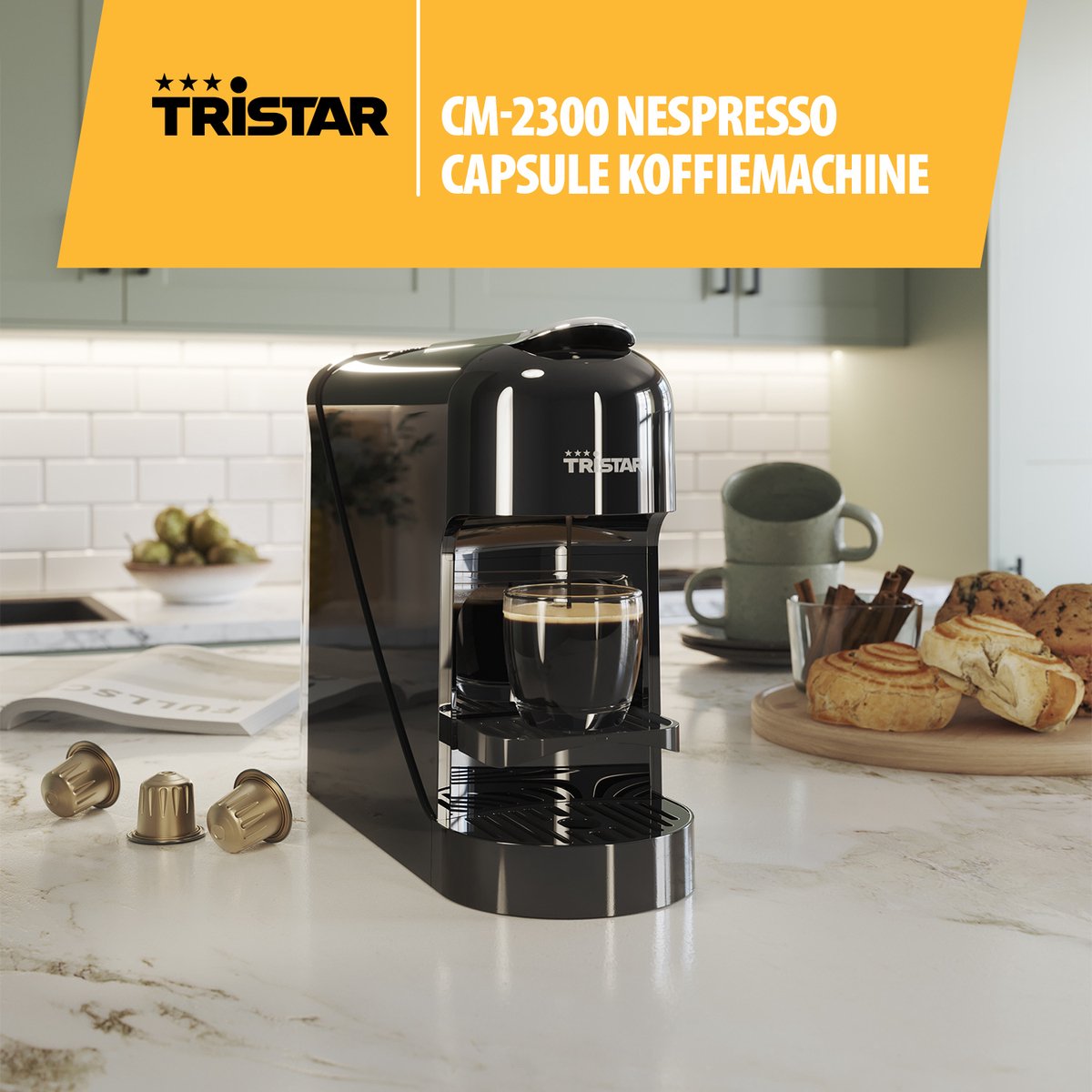 De Tristar CM-2300 is ontworpen voor gebruik met Nespresso-capsules (bron: listing, gecontroleerd 2025). Dat betekent dat je toegang hebt tot een groot assortiment koffiesmaken, intensiteiten en limited editions. Voor wie graag varieert of specifieke melanges prefereert, is dit een groot voordeel: je bent niet gebonden aan één merk capsule.