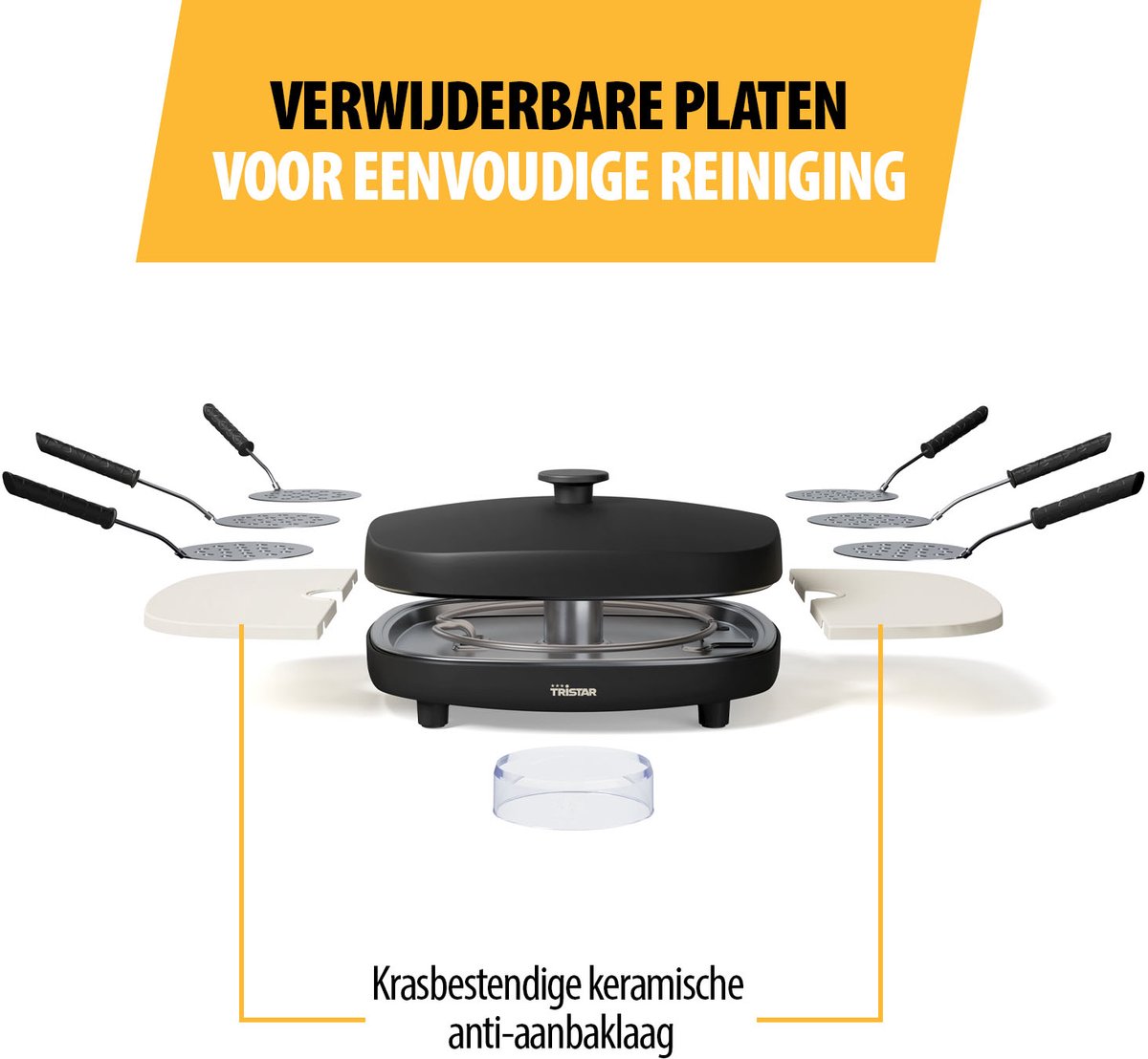 Schoonmaken is vaak de bottleneck bij tafelapparaten. Met de verwijderbare plaat maak je dit werk een stuk lichter. Laat de plaat afkoelen, neem hem er voorzichtig uit en maak hem schoon met warm water en een zachte spons. Lastige hoekjes bereik je zo beter, waardoor het apparaat langer mooi blijft en snel weer klaar is voor de volgende avond.
