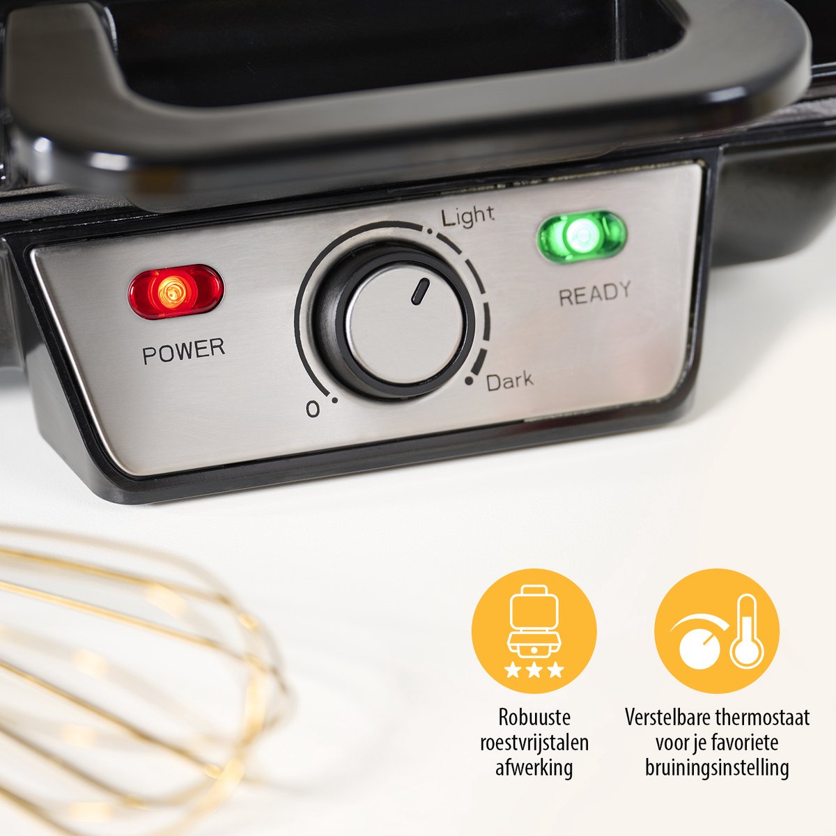 Omdat de warmte binnen enkele minuten op peil is, kun je bovendien verschillende standen snel na elkaar proberen. Tip: noteer per recept je favoriete stand en baktijd. Zo maak je voortaan zonder nadenken consistent dezelfde wafels.