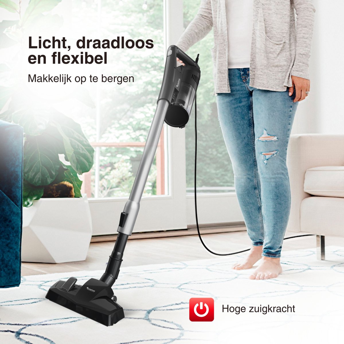 - Je een lichte, wendbare steelstofzuiger met snoer zoekt die je zonder moeite dagelijks pakt.