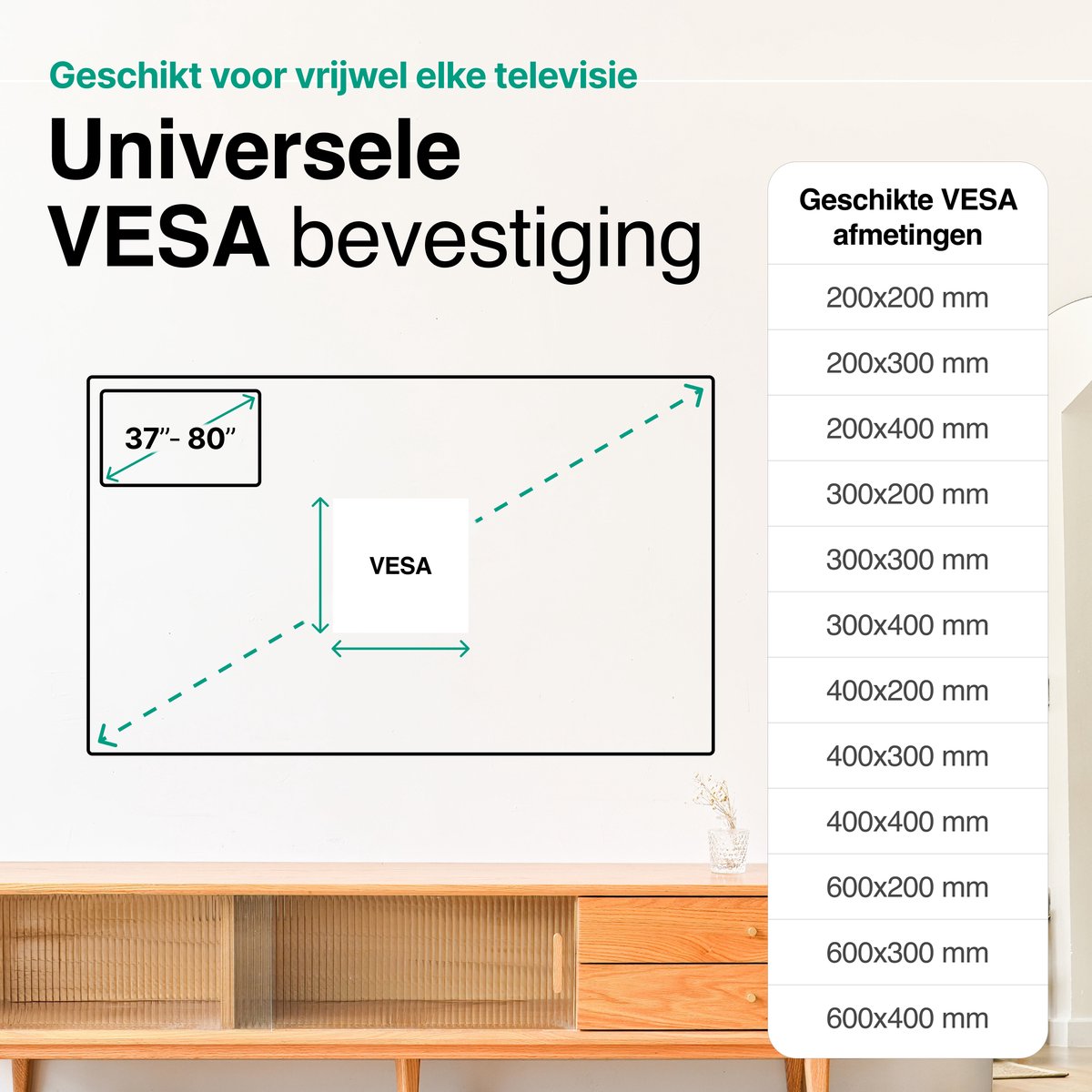 - Ondersteunt VESA-maten tot 600×400; geschikt voor 37–80 inch.