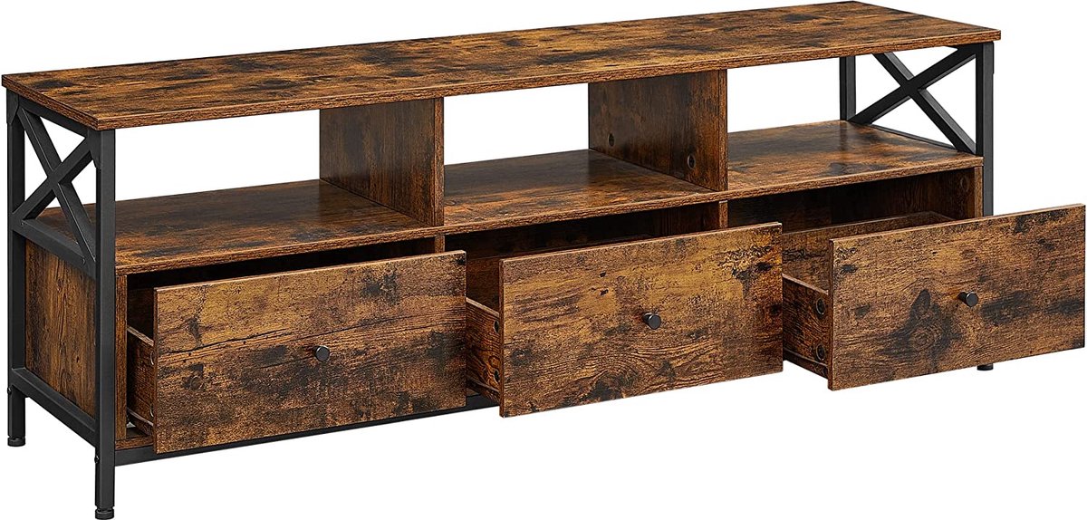 Specificaties: Tv-Kast, TV Meubel Tot 75 inch, Met 3 Laden, Vintage Bruin-Zwart review