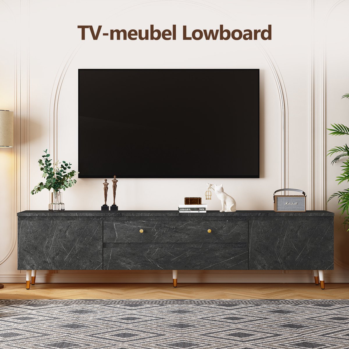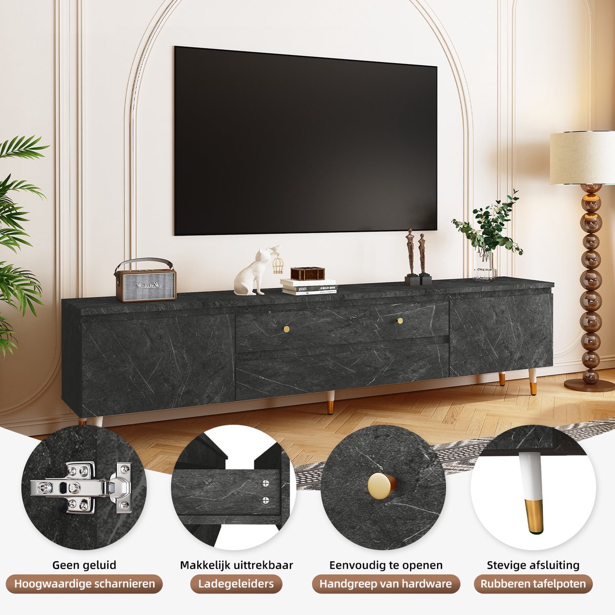 Specificaties: TV Meubel Zwart met Marmerlook review: ruime opbergruimte, modern