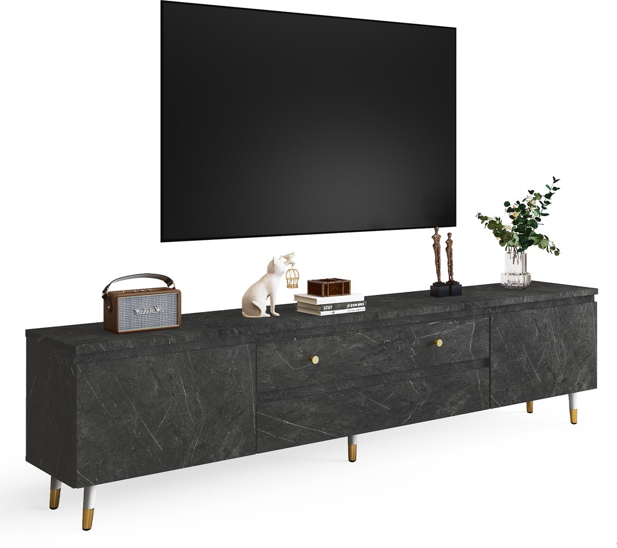 TV Meubel Zwart met Marmerlook review: ruime opbergruimte, modern