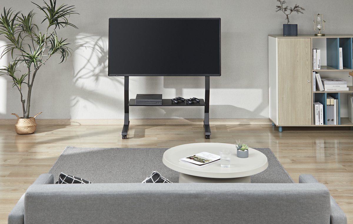 • Verplaatsen: dankzij de verrijdbaarheid verplaats je het scherm zonder zware tillast. De continu draaibaarheid maakt het simpel om de kijkrichting aan te passen, wat tijd scheelt tijdens presentaties.