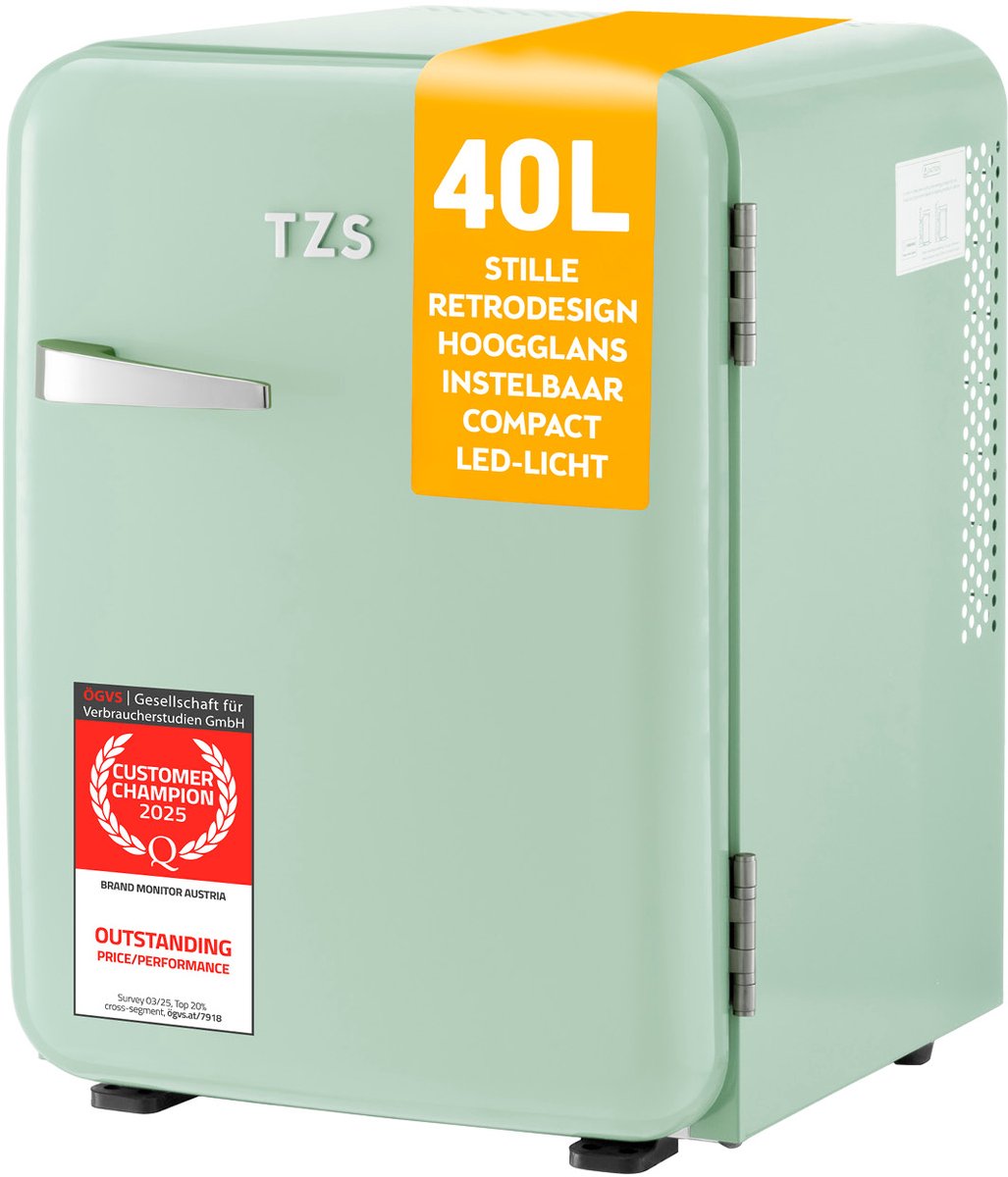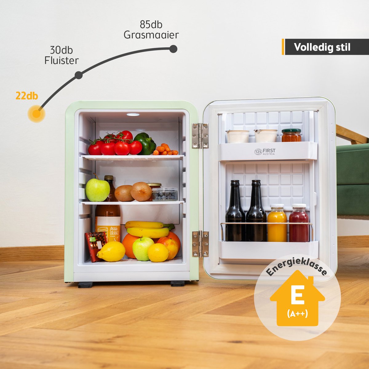 1 recensie voor TZS First Austria Mini koelkast – Minibar – 40 liter – Vrijstaand – Volledig stil 22dB – Retro – Groen review: energiezuinig