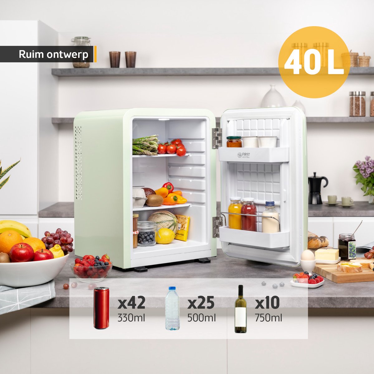 TZS First Austria Mini koelkast – Minibar – 40 liter – Vrijstaand – Volledig stil 22dB – Retro – Groen review: energiezuinig