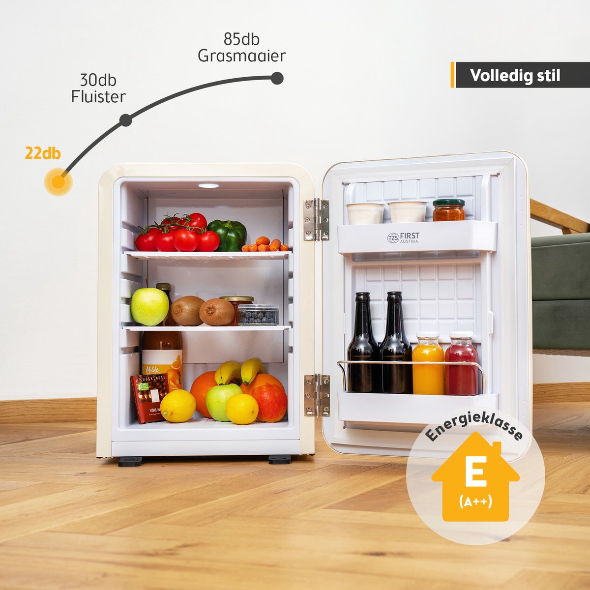 Specificaties: TZS First Austria Mini koelkast test: stil 22 dB, energiezuinig
