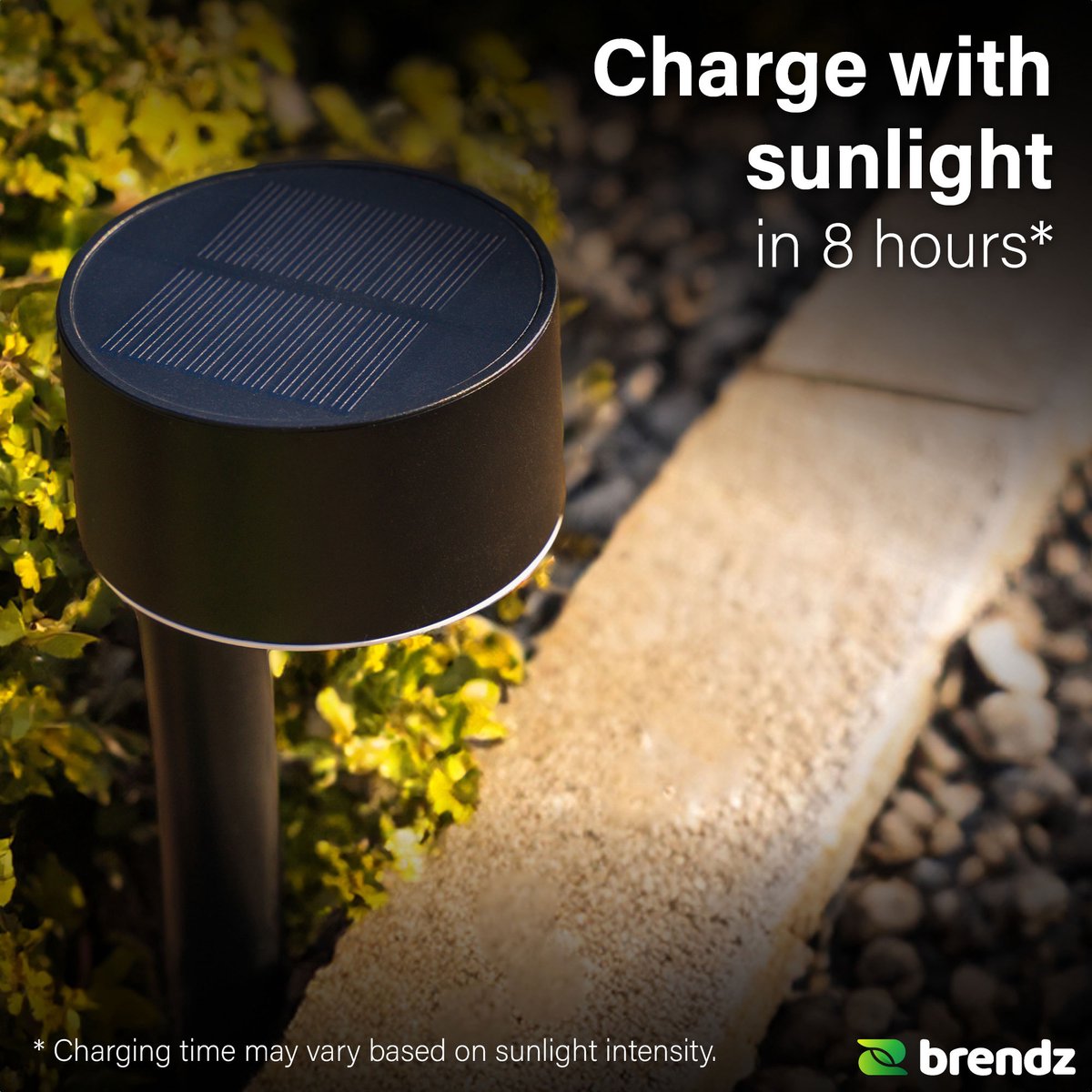 - Verlicht paden de hele nacht, tot 12 uur op één lading.