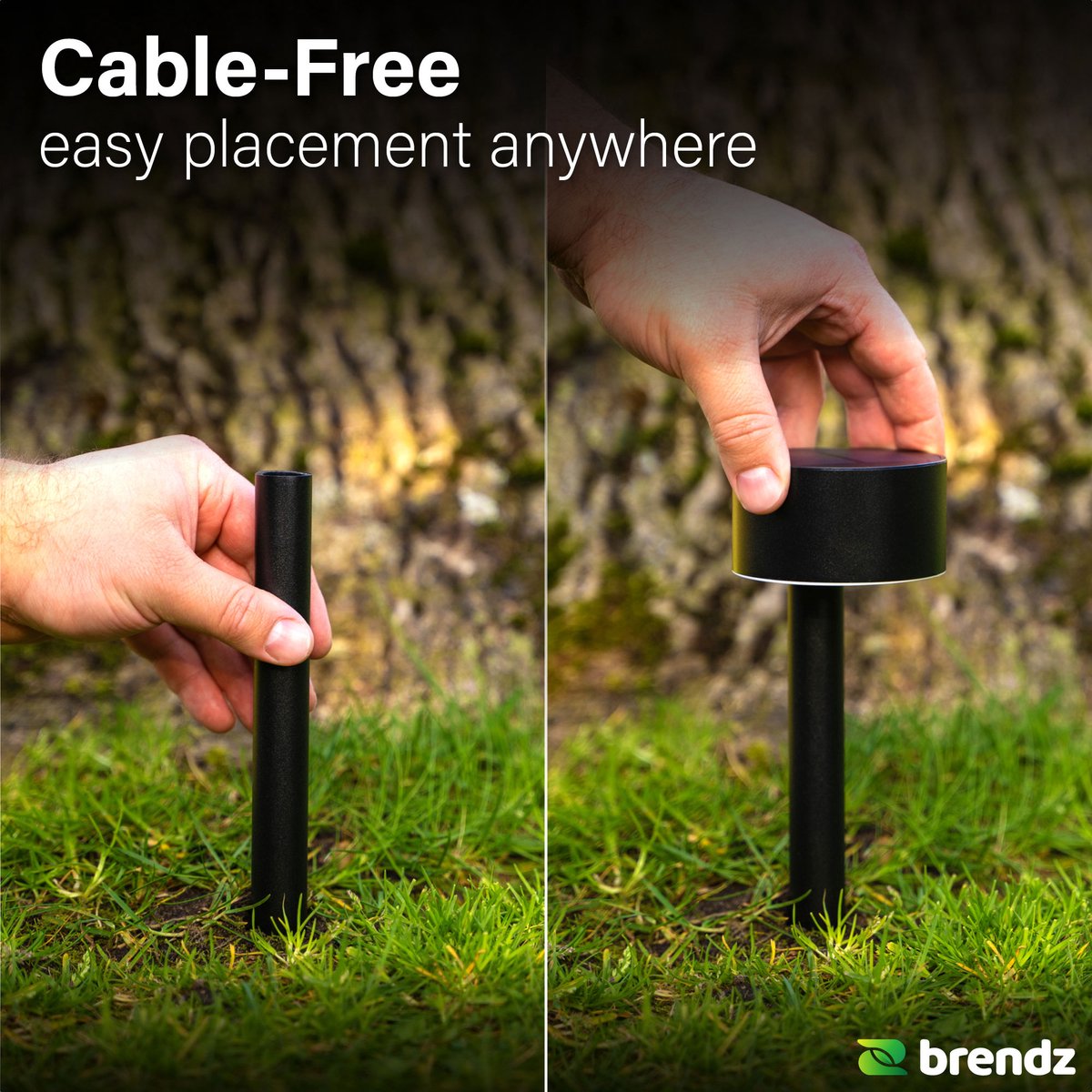 - Plaats snel zonder kabels, steek eenvoudig in de grond.