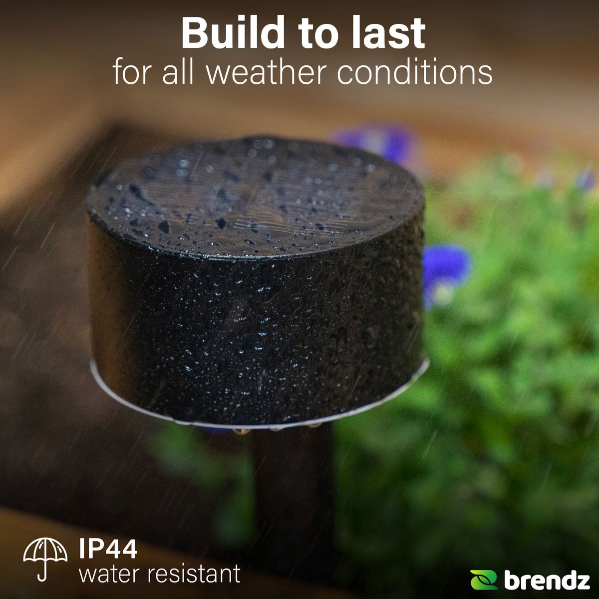 IP44 beschermt tegen spatwater en stofdeeltjes. In combinatie met roestvrij staal en poedercoating zijn de lampen gemaakt voor buiten. Regenbuien, dauw en sproeiers vormen geen probleem. De poedercoating helpt bovendien om de afwerking mooi te houden, zelfs wanneer je de lampen het hele seizoen laat staan.