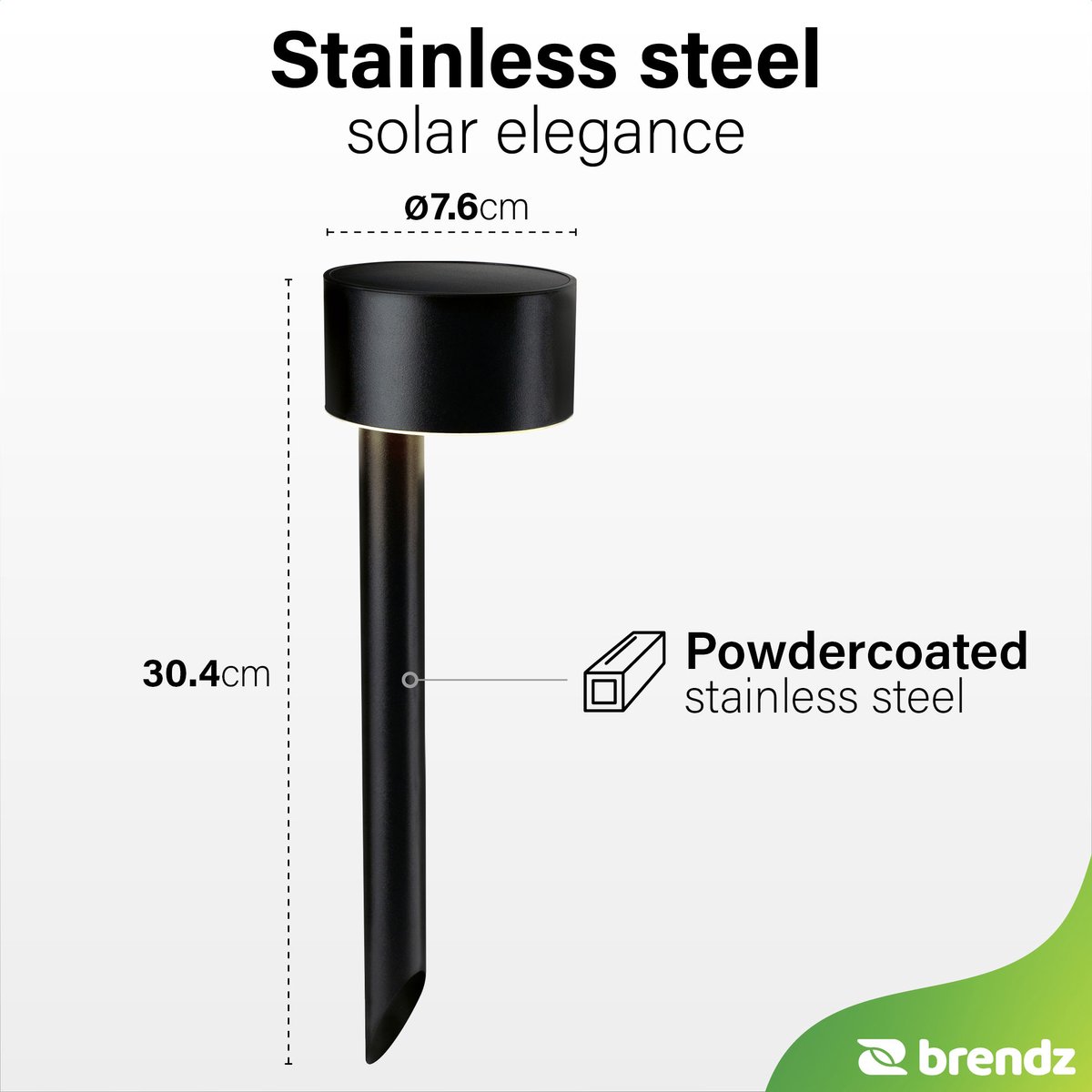 De Brendz Vik zonnepriklamp is een op zonne-energie werkende tuinlamp die bij schemer automatisch inschakelt, zonder kabels of stroomkosten. Ideaal voor Nederlandse tuinen: sfeervol, onderhoudsarm en razendsnel te plaatsen. De behuizing van gepoedercoat roestvrij staal is gemaakt voor jarenlang buitengebruik.