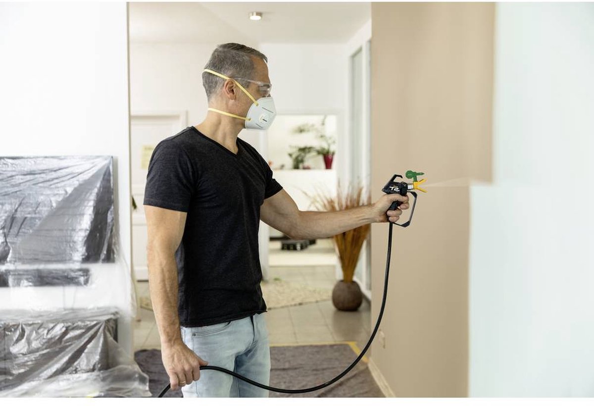 De verminderde spuitnevel kan, volgens de fabrikant, tot 55% minder materiaalverlies geven. In de praktijk vertaalt dat zich in minder afplakwerk en een schonere werkomgeving. Voor projecten met meerdere ruimtes of vervuilingsgevoelige omgevingen is dat een duidelijke winst.