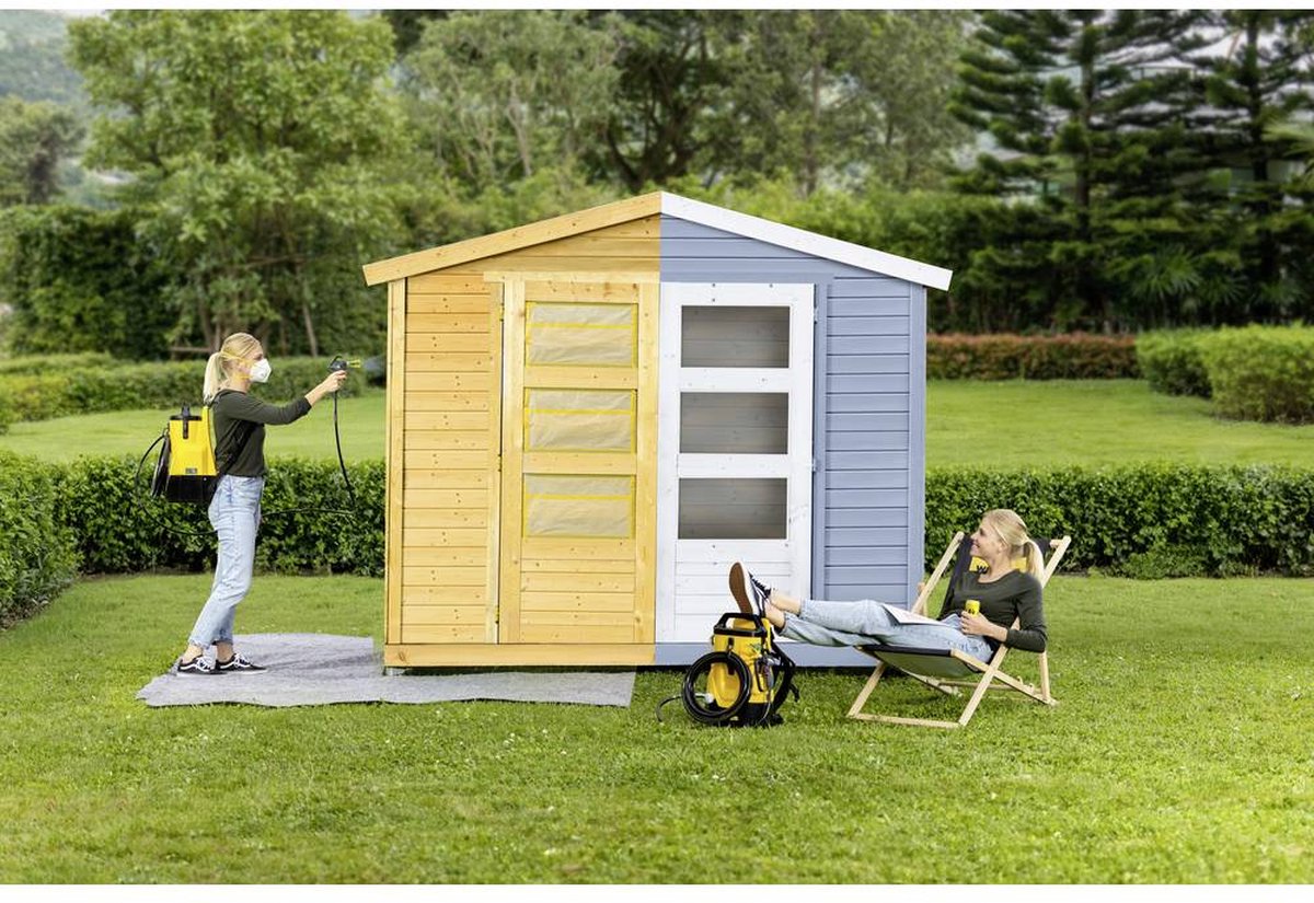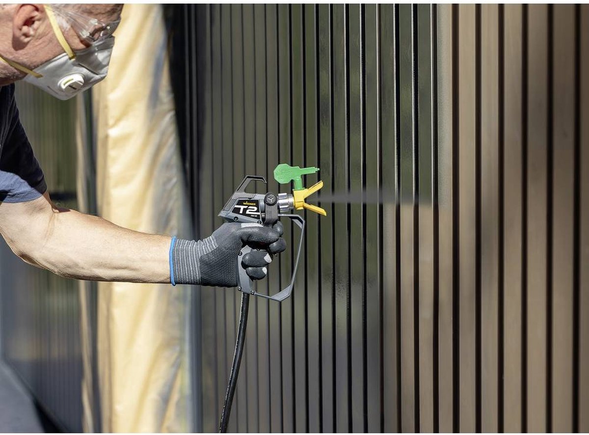 Deze flexibiliteit maakt de machine tot een allround airless verfspuit voor uiteenlopende projecten: van de huiskamer tot de schuur of gevelbetimmering.