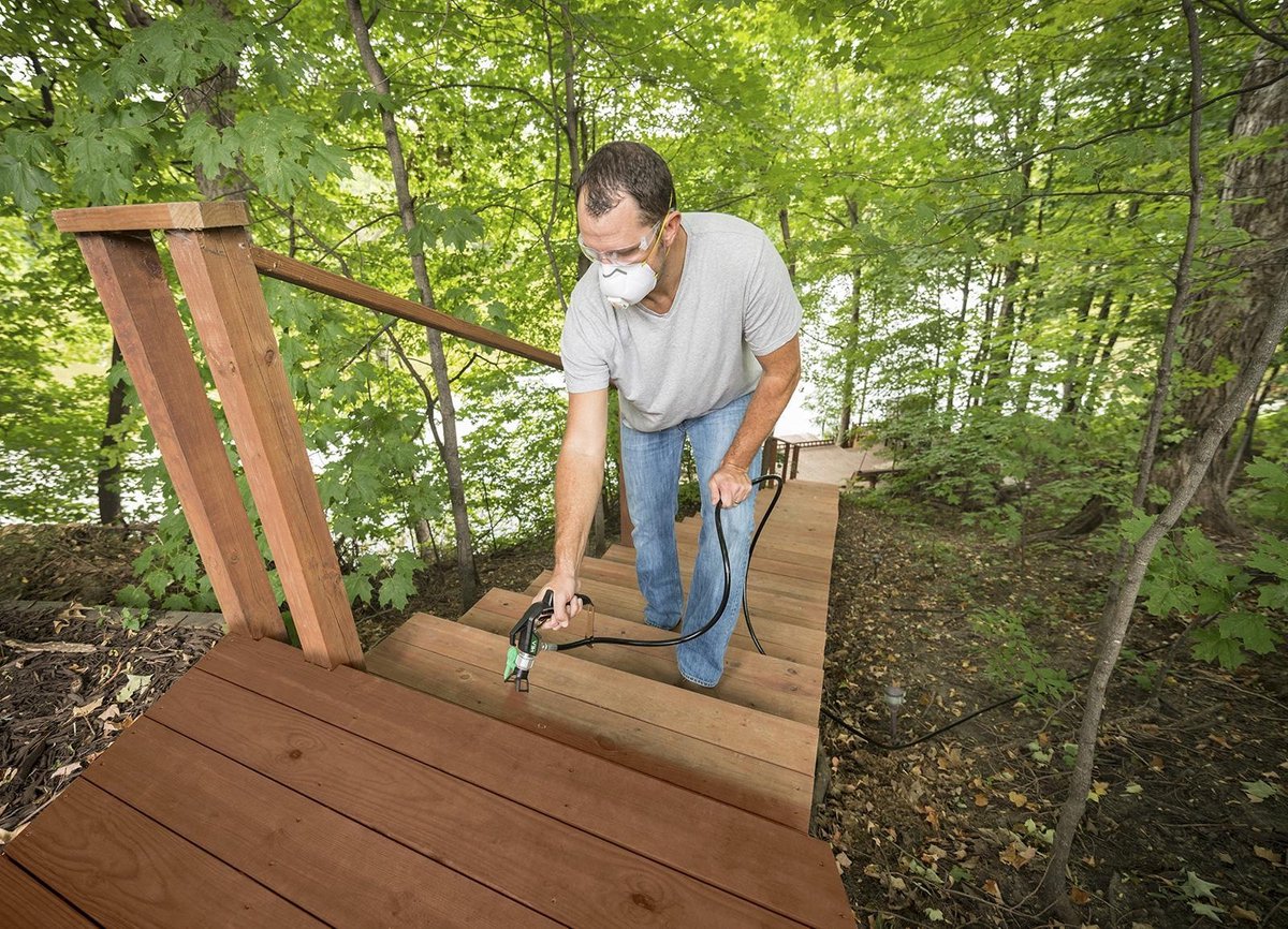De 311-tip is een goede basis voor kozijnen, deuren, balken en tuinhout. Werk iets langzamer voor strakke dekking zonder druipers. - Viscositeit en verdunning