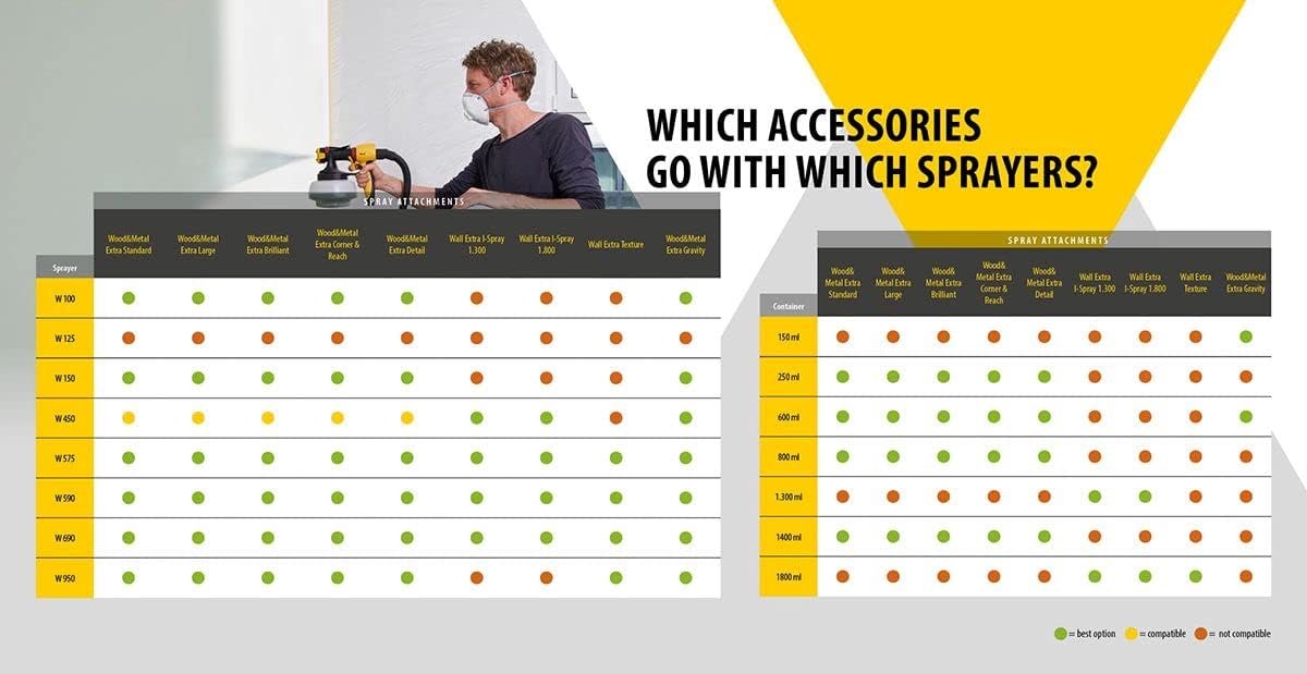 | Past op alle Wagner lage-druk HVPL verfspuiten (volgens vermelding) | Toepassingsgebied is gericht op lak en beits; minder veelzijdig voor andere materialen |