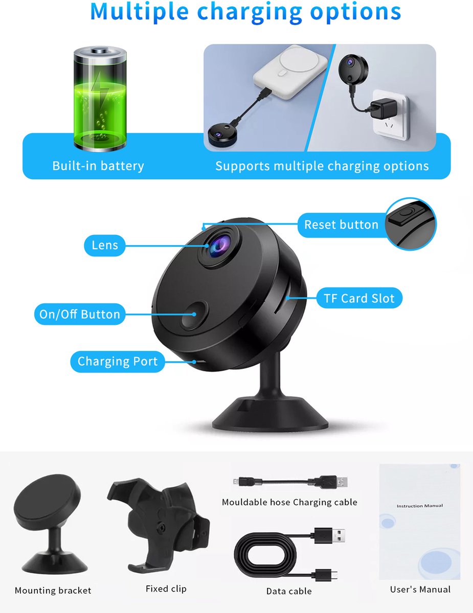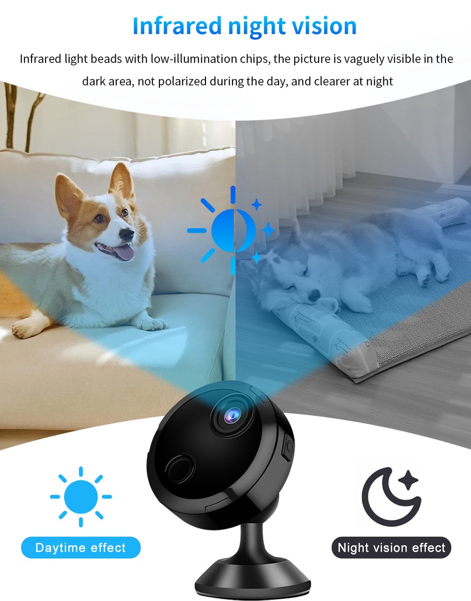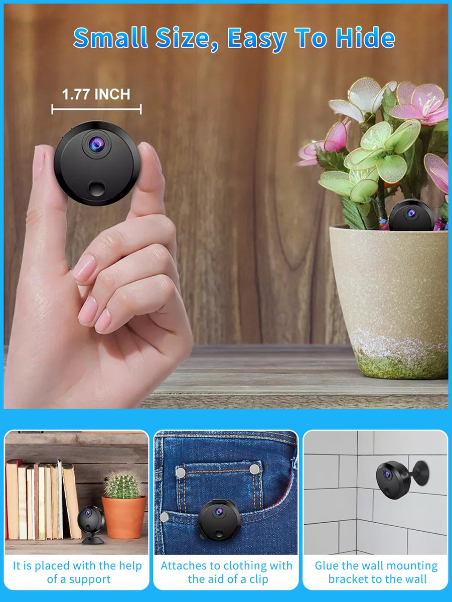 Opname in 1080P Full HD voor heldere beelden dichtbij (primary keyword: mini wifi-camera) | Alleen 2,4 GHz-wifi — geen ondersteuning voor 5 GHz-netwerken |