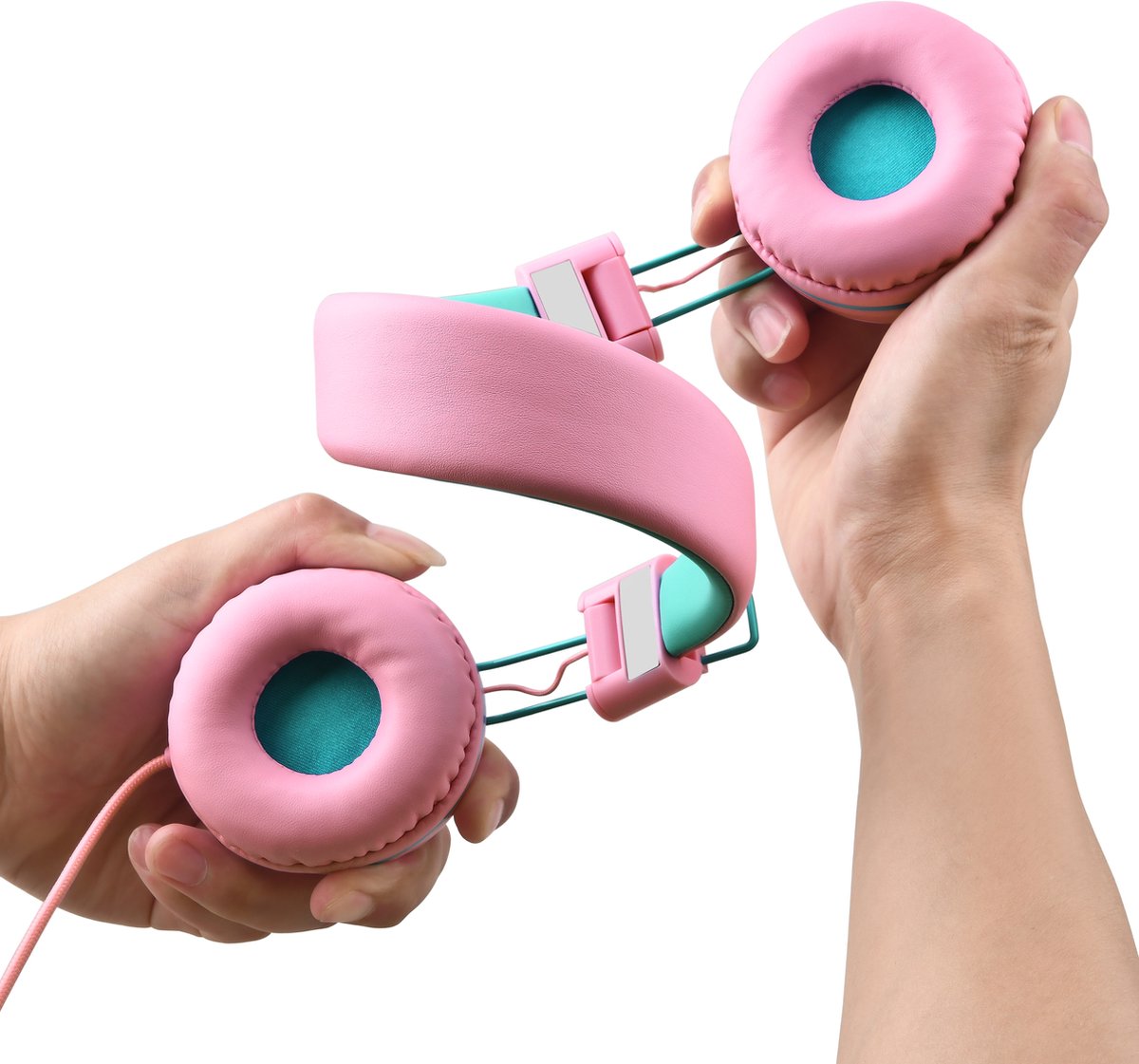 De hoofdband is verstelbaar zodat de koptelefoon met het kind kan meegroeien. De omschreven extra flexibele en robuuste uitvoering duidt op een ontwerp dat tegen een stootje kan — belangrijk in huishoudens met jonge kinderen waar accessoires snel ruw behandeld worden.