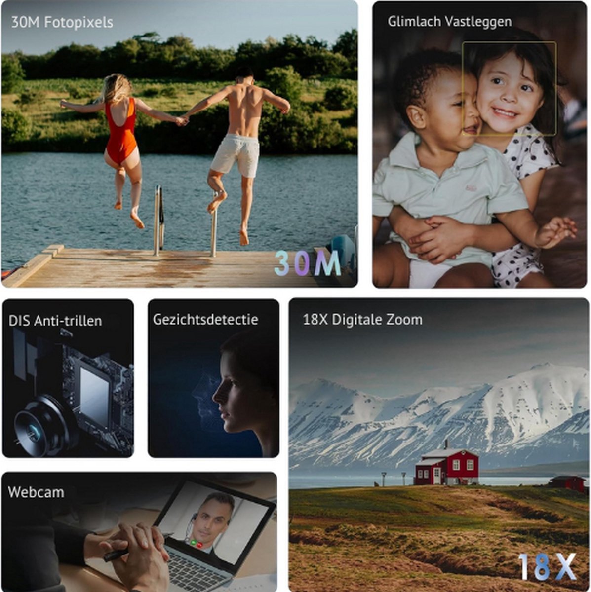 Deze compacte digitale videocamera is gemaakt om je mooiste momenten eenvoudig en scherp vast te leggen. Volgens de productbeschrijving film je in hoge kwaliteit, met een uitvoering die speciaal geschikt is voor vlogs, vakanties, familiefeesten en creatieve projecten. De camera belooft gebruiksgemak en draagbaarheid, zodat zowel beginners als hobbyfilmers er direct mee aan de slag kunnen.