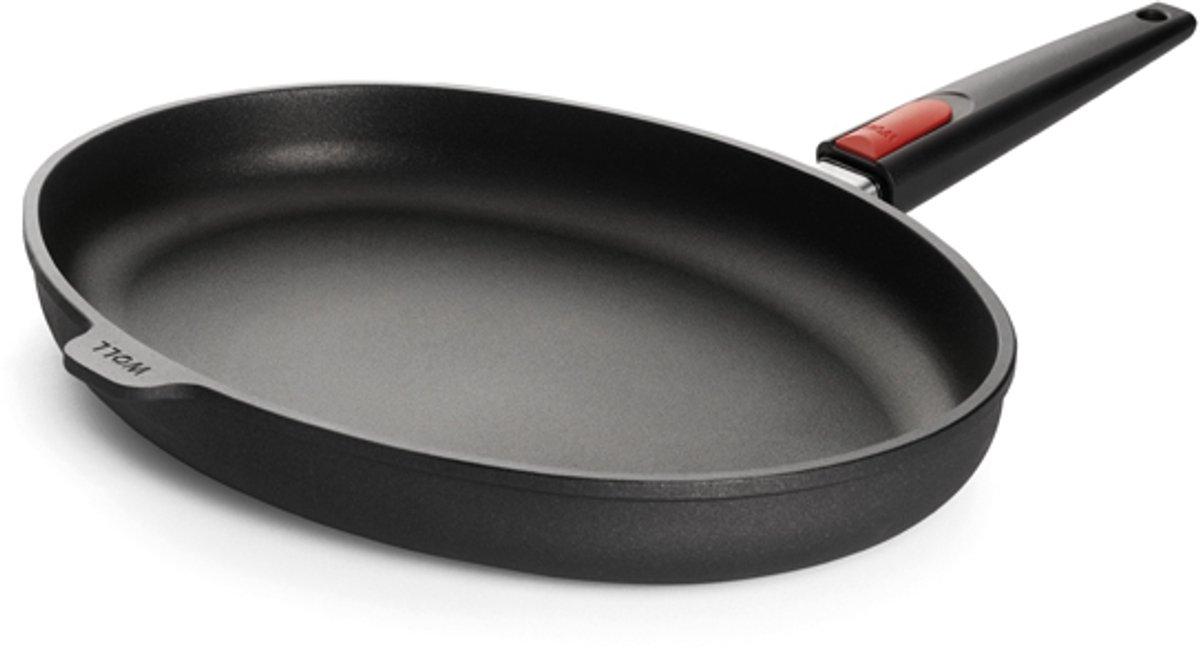 Overzicht:Deze vispan uit de Nowo Titanium lijn van Woll is perfect voor Nederlandse huishoudens die energie willen besparen en gezond willen koken. De pan is van coquille-gegoten aluminium en heeft de afmetingen 38 cm x 28 cm x 5,5 cm.