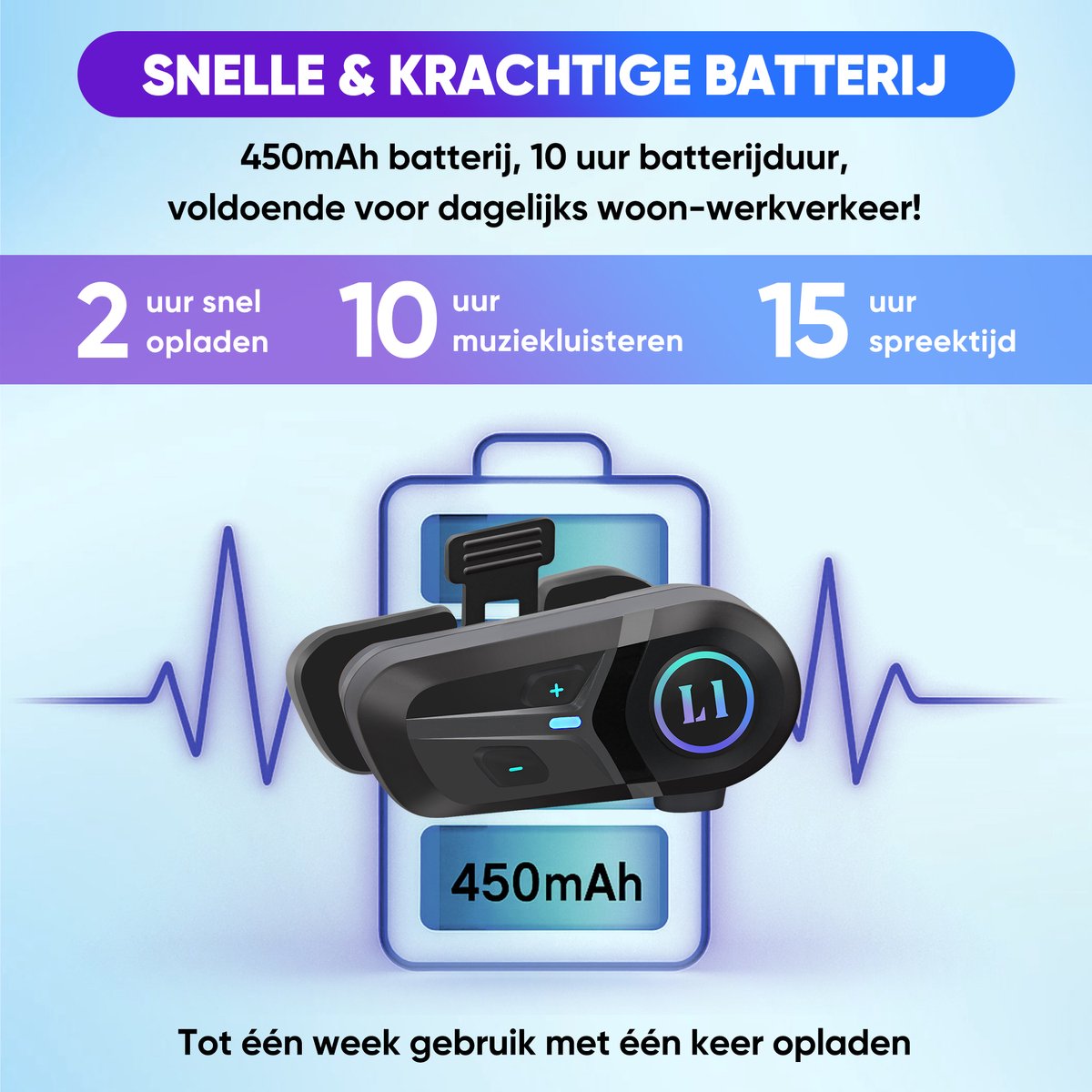 Overzicht:De Xelar L1 Pro is een geavanceerd communicatiesysteem voor in de motorhelm, bedoeld voor Nederlandse motorrijders die geen concessies willen doen aan comfort en veiligheid. Met een accuduur tot 15 uur blijft u de hele dag verbonden en goed verstaanbaar.