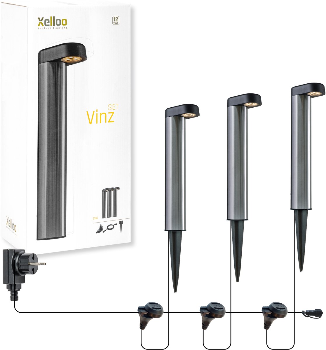 Opmerking: de beschrijving vermeldt dat de Xelloo Vinz op een 12V transformator werkt, maar niet expliciet of deze transformator en bijbehorende kabels worden meegeleverd. Controleer de productpagina of verpakking voor de exacte inhoud.