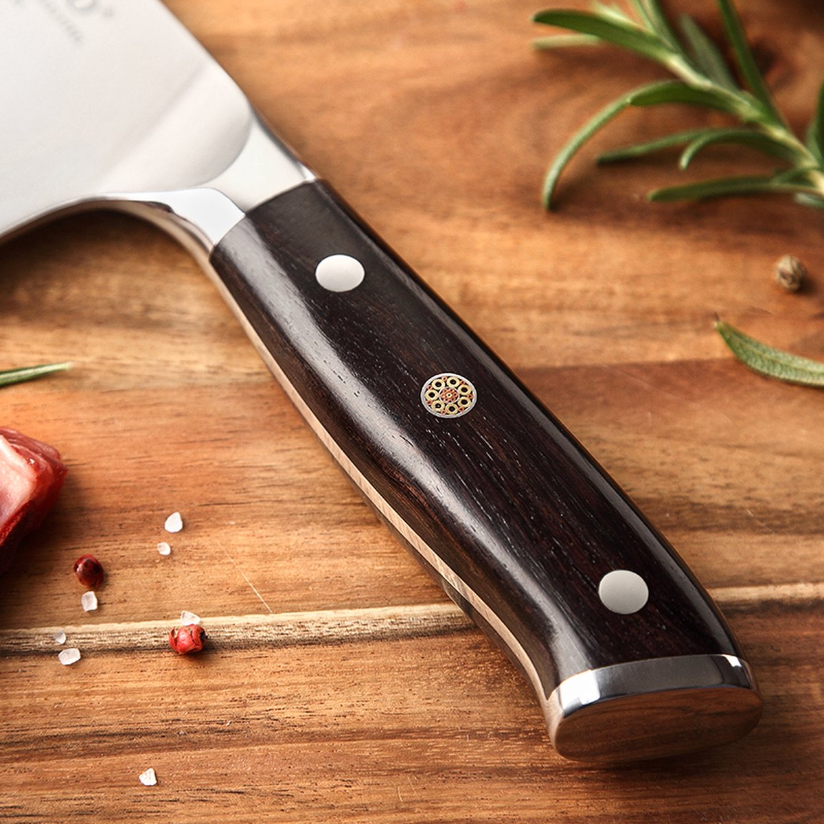Het Xinzuo B13S hakmes geeft Nederlandse keukenliefhebbers krachtige controle bij hakken en snijden van vlees, bot en groenten. Het 18 cm lemmet van Duits roestvrij staal (1.4116) met donker ebbenhouten handvat biedt duurzaamheid en comfort. Geleverd in een luxe bewaardoos met echtheidscertificaat.