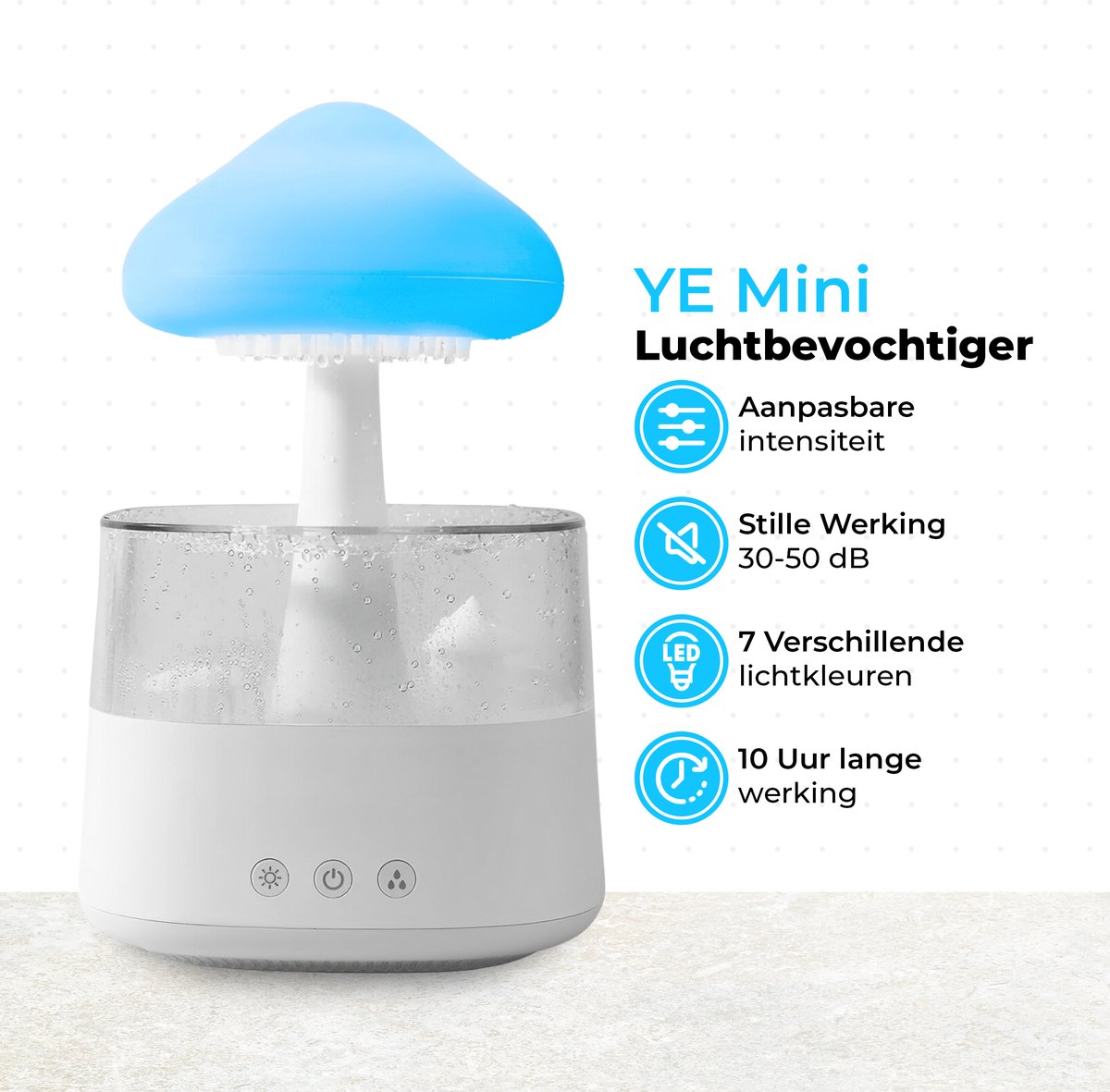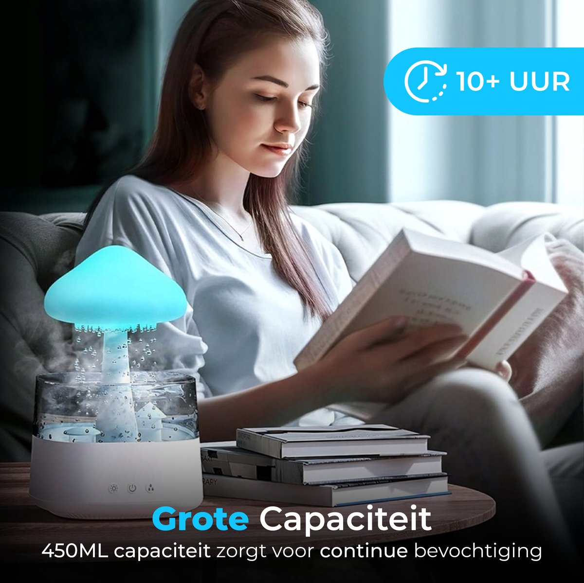 (Secondary keyword: paddestoelvormige luchtbevochtiger — dit model is visueel en qua functionaliteit bedoeld voor sfeergebruik.)