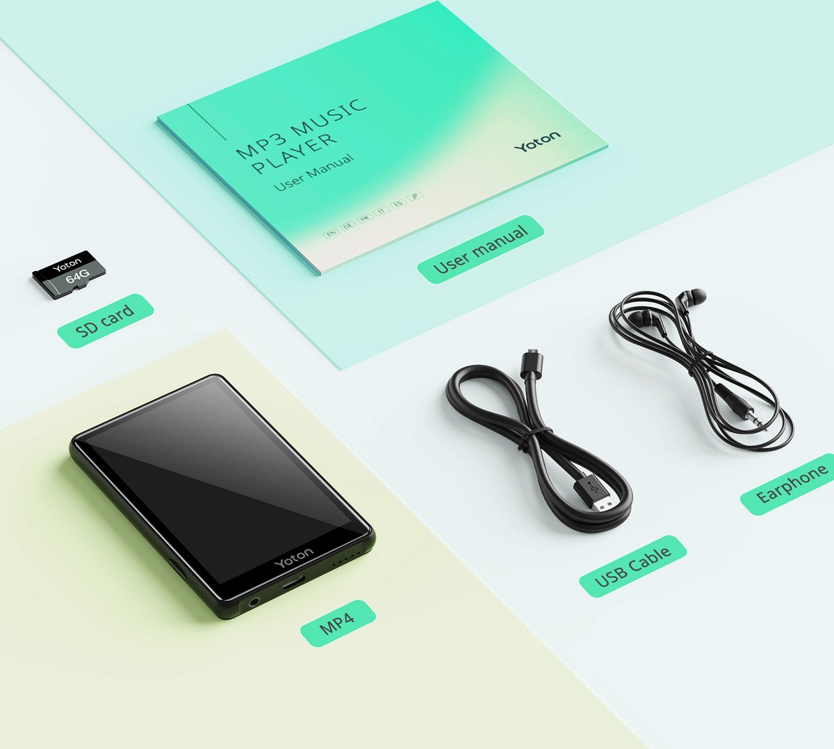 Ergonomie: het touchscreen maakt navigatie intuïtief en geschikt voor vegen en tikken; dat helpt snel door lijsten of videovooruitgang te springen. Het apparaat wordt geleverd met bedrade oordopjes, wat erop wijst dat Yoton ook rekening houdt met gebruikers die geen Bluetooth-hoofdtelefoon gebruiken. Omdat er geen verdere details over knoppenindeling of fysieke bediening zijn gegeven, kun je ervan uitgaan dat de meeste interactie via het scherm plaatsvindt.