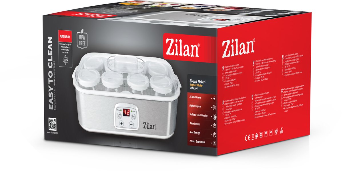 De Zilan ZLN6104 yoghurtmaker is een compacte, gebruiksvriendelijke yoghurtmachine waarmee je thuis gecontroleerd en hygiënisch gefermenteerde yoghurt maakt. Met een instelbare temperatuur (volgens de productinformatie 20–50°C), een ruime tijdklok en een inhoud van 1 liter is dit apparaat gericht op iedereen die met minimale moeite constante resultaten wil. Of je nu naturel, fruitig of honingzoet verkiest: je bepaalt zelf de ingrediënten en structuur.